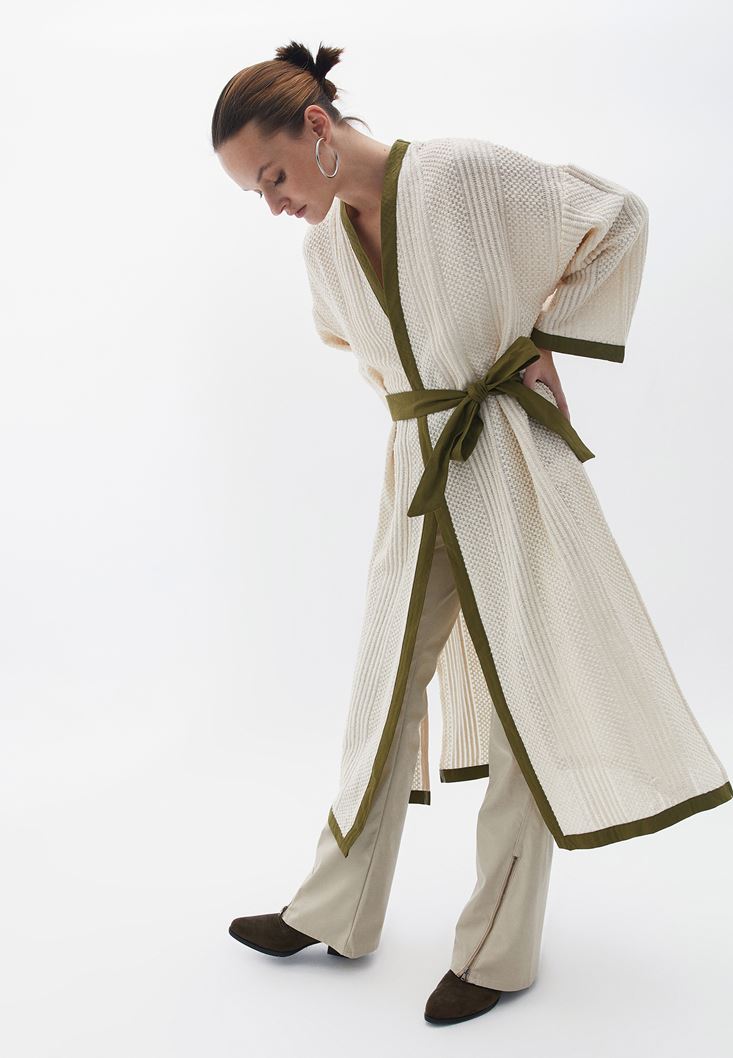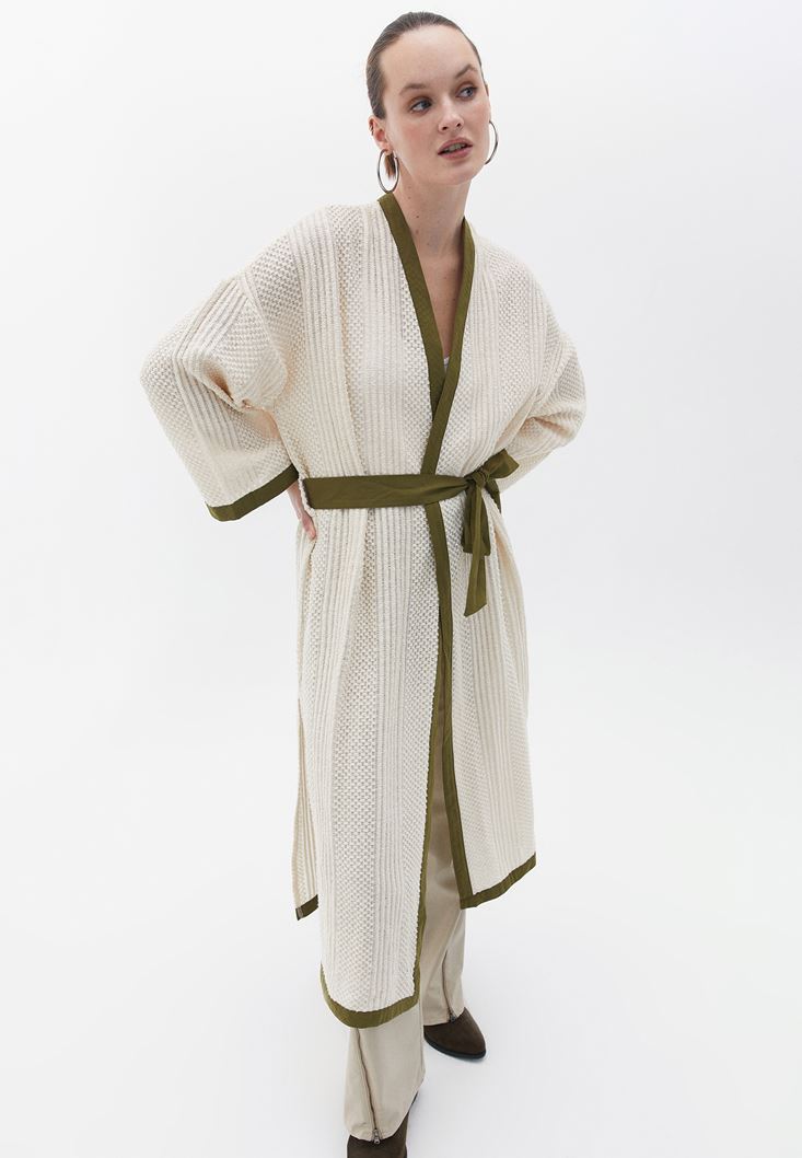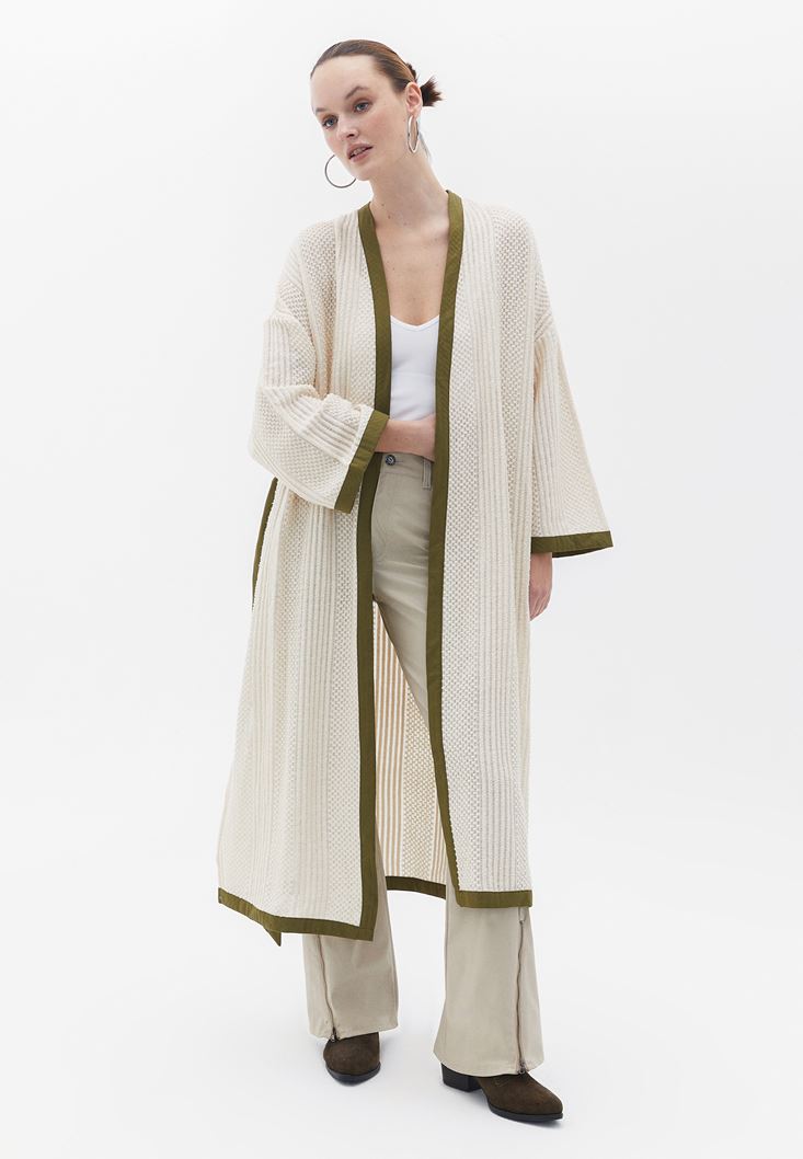 • Bayan Krem Kemerli Loose-Fit Kimono