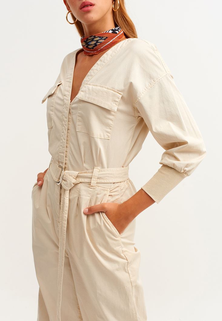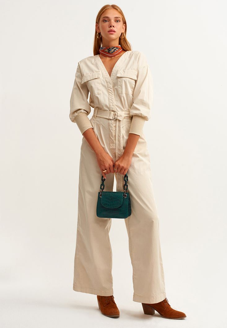 Kemerli Maxi Tulum modeli. Pamuk içerikli bu tulum ile muhteşem bir görünüm yarat... Güçlü ve etkili bir duruş yakalayabileceğin maxi tulum ile buluşmalara hızlı bir şekilde hazırlanabilirsin. Tamamen rahatlıktan yana olduğun günlerde onu sneakerla, çekiciliğin dozunu artırmak istediğinde ise topuklu ayakkabı ile birleştir!