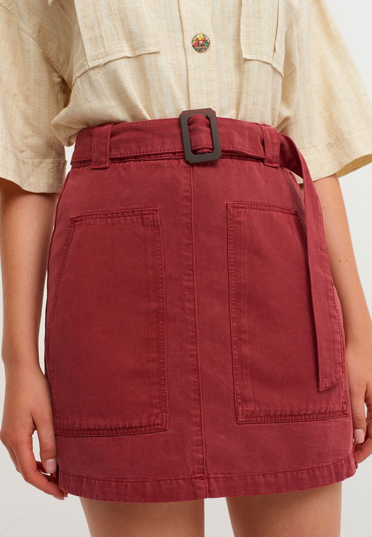 • Bayan Bordo Kemerli Mini Etek ( TENCEL™ )