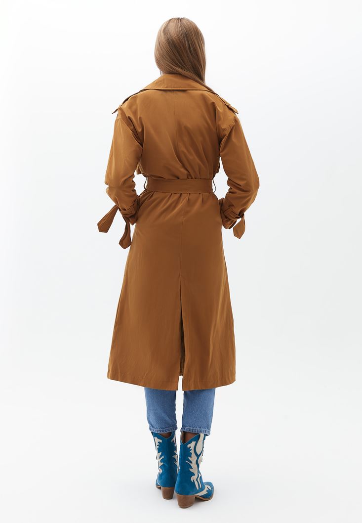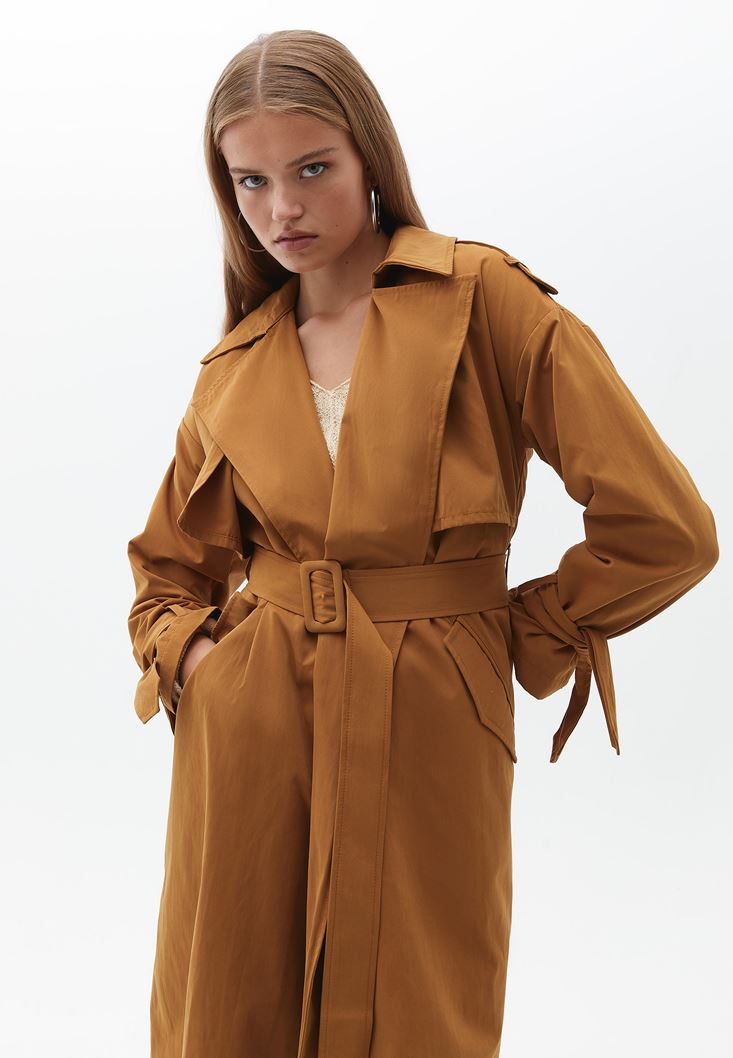 • Bayan Kahverengi Kemerli Oversize Trençkot