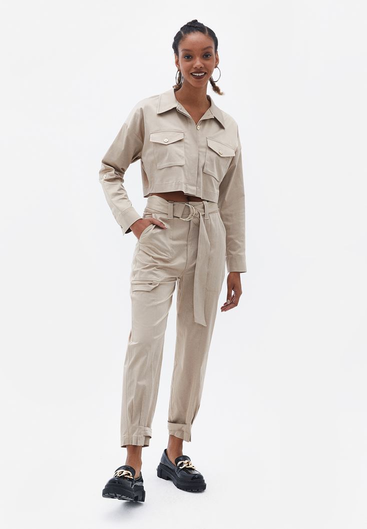 Kemerli Pantolon Ve Crop Gömlek Kombini