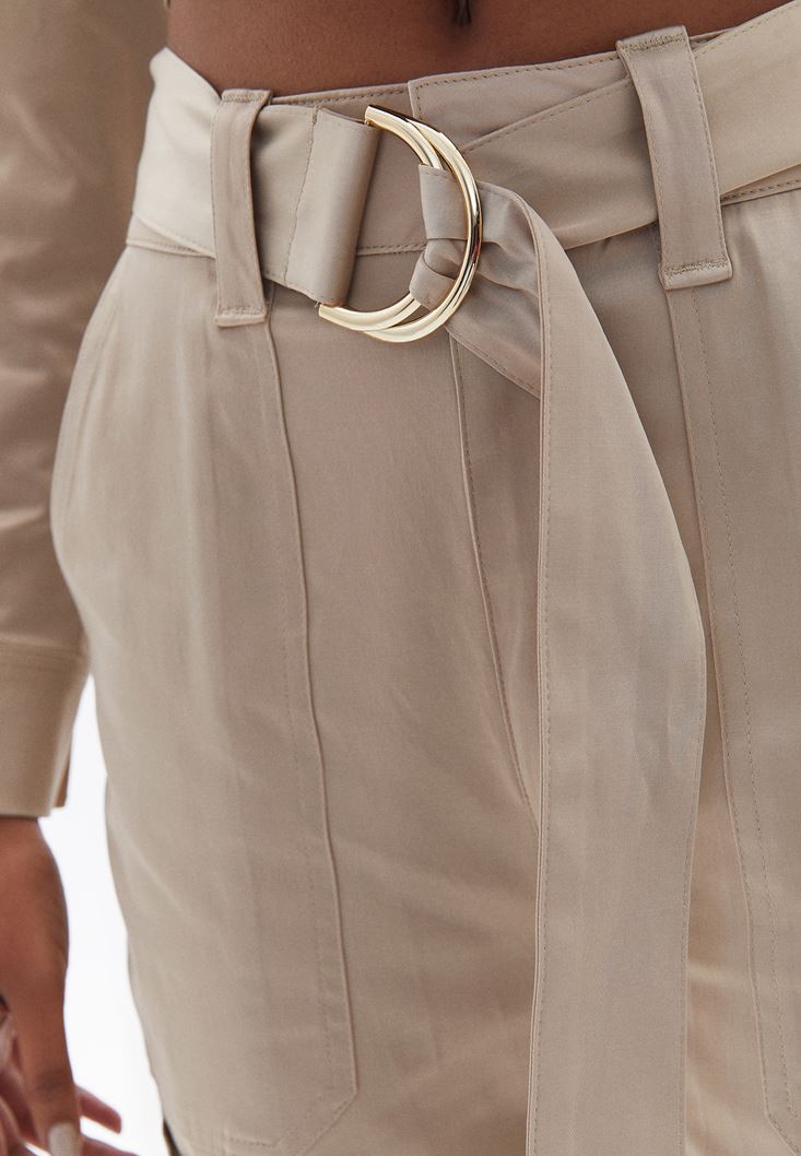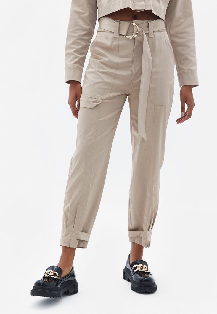Yüksek Bel Kemer Detaylı Carrot-Fit Pantolon