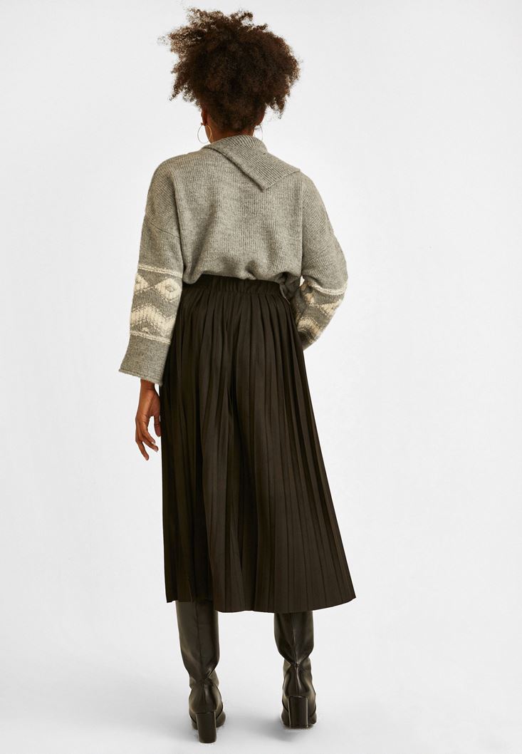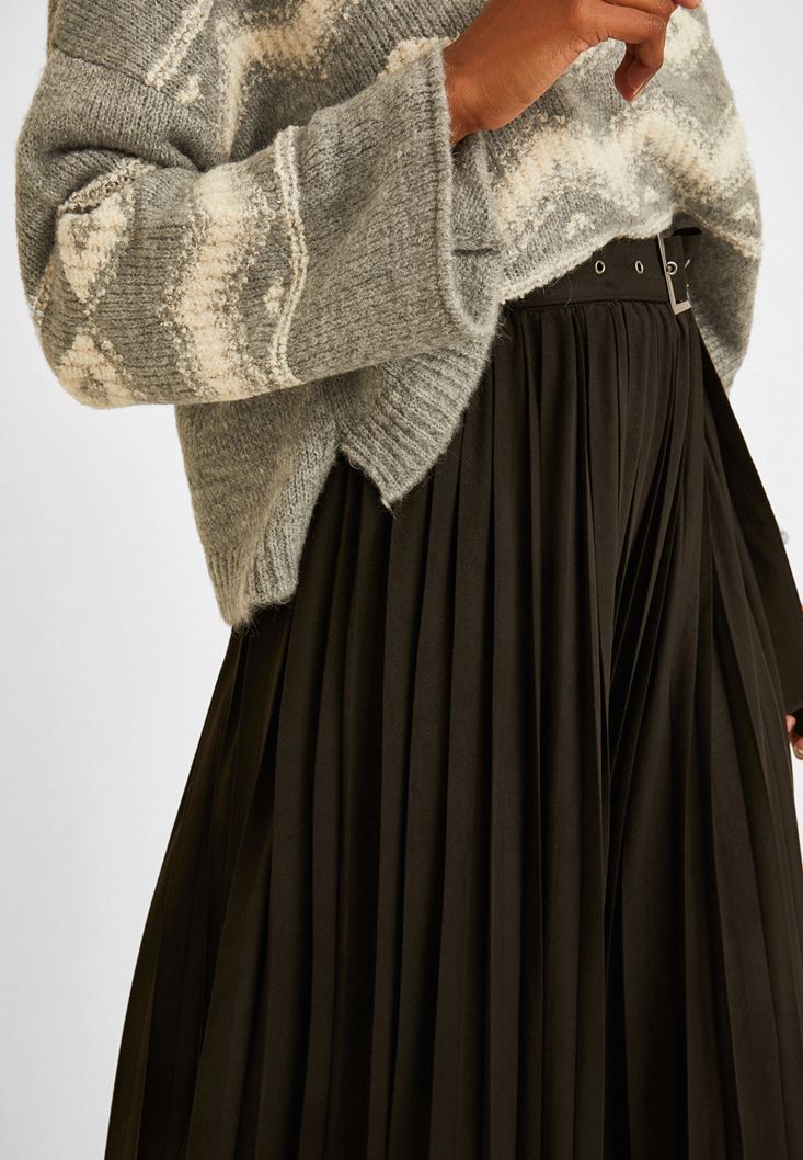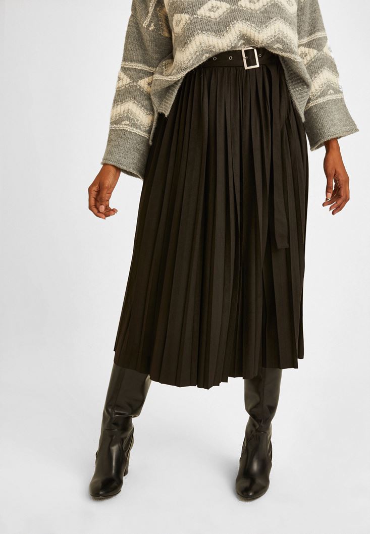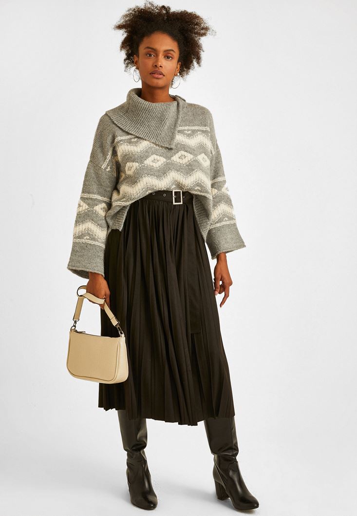 Kemerli Pileli Etek modeli, yumuşacık dokusu ve hareketli görünümü ile yeni sezonda sizlerle buluşuyor. Kadın etek modeli, şıklık sunan pileli kumaşıyla ve belinde yer alan kemer detayıyla gardırobunuzda yer almak için hazır görünüyor. Pileli etek modeli, rahatlık sunan kalıbı ve yüksek belli duruşu ile sezon trendleri arasında ön plana çıkıyor. Pileli etek modelinin midi kesiminin zarifliği ile günlük kombinlerinizi rahatlıkla şekillendirebilirsiniz. Kemerli etek modelini, crop kazaklarla veya bluzlarla kullanarak çok seveceğiniz kombinler yapabilirsiniz. Uzun çizmeler ya da topuklu botlar tercih edeceğiniz stilinize kadın etek modelini dahil edebilirsiniz. Oxxo'nun feminen ayrıntılar ve merak uyandıran görünümler ile sizlere sunduğu kadın etek modelleriyle yeni sezonda fark yaratabilirsiniz.