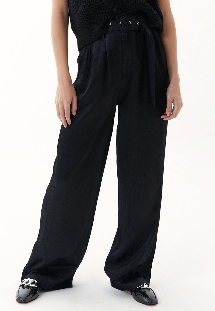%100 viskon içerikli, ultra yüksek bel, kendi kumaşından kemerli, ön bel kısmı pile detaylı, bol paça, saten görünümlü parlak doku, önü iki cepli.