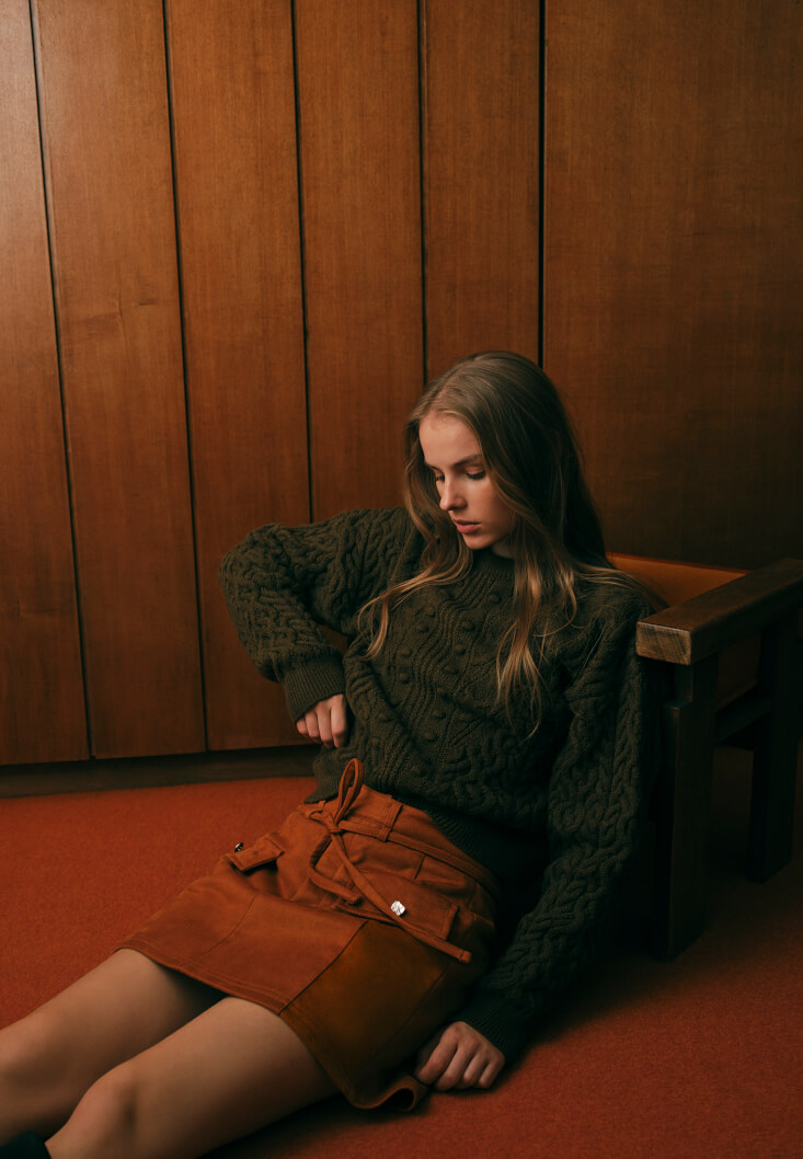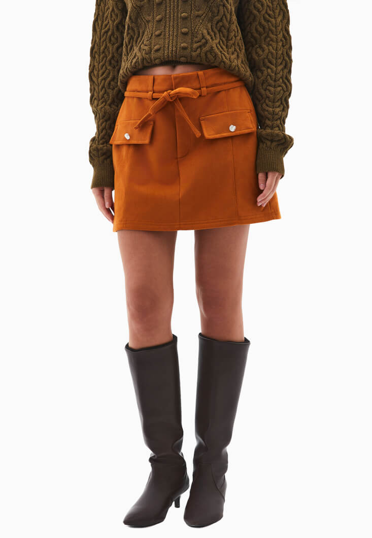 • Bayan Kahverengi Kemerli Süet Mini Etek