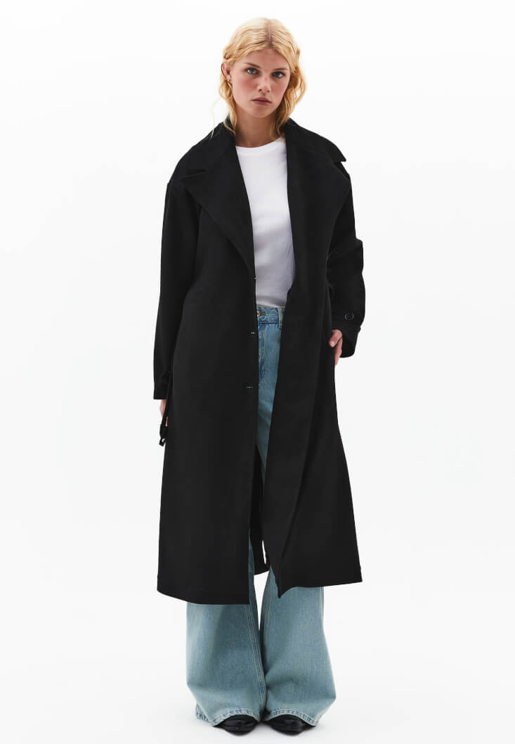 • Bayan Siyah Kemerli Süet Trençkot
