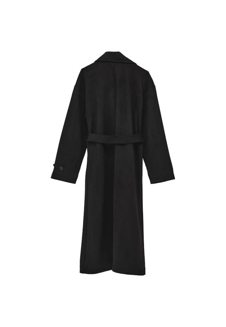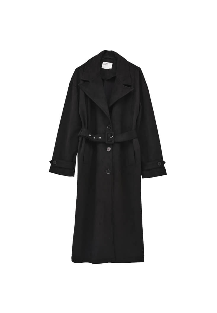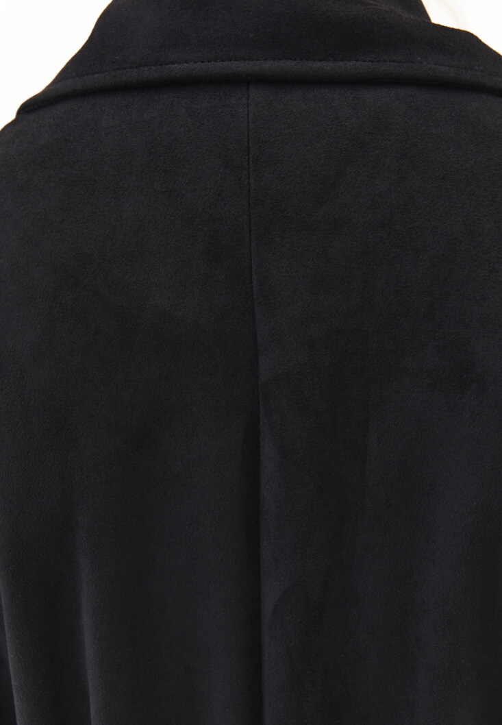 Siyah Kemerli Süet Trençkot