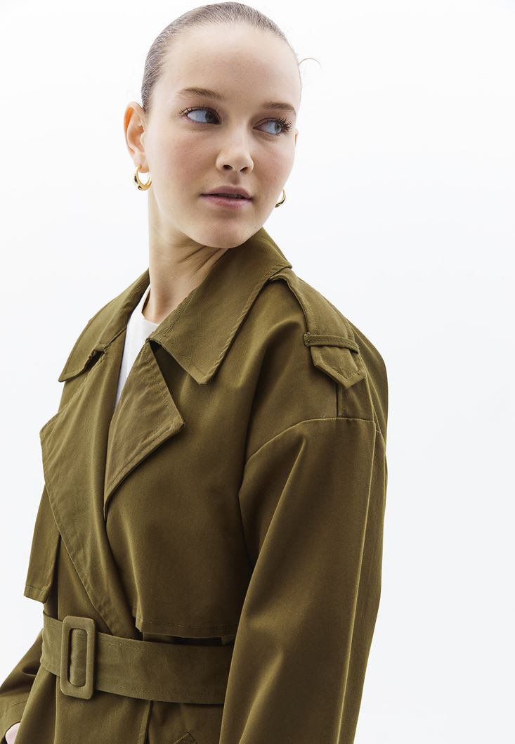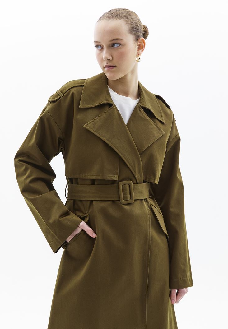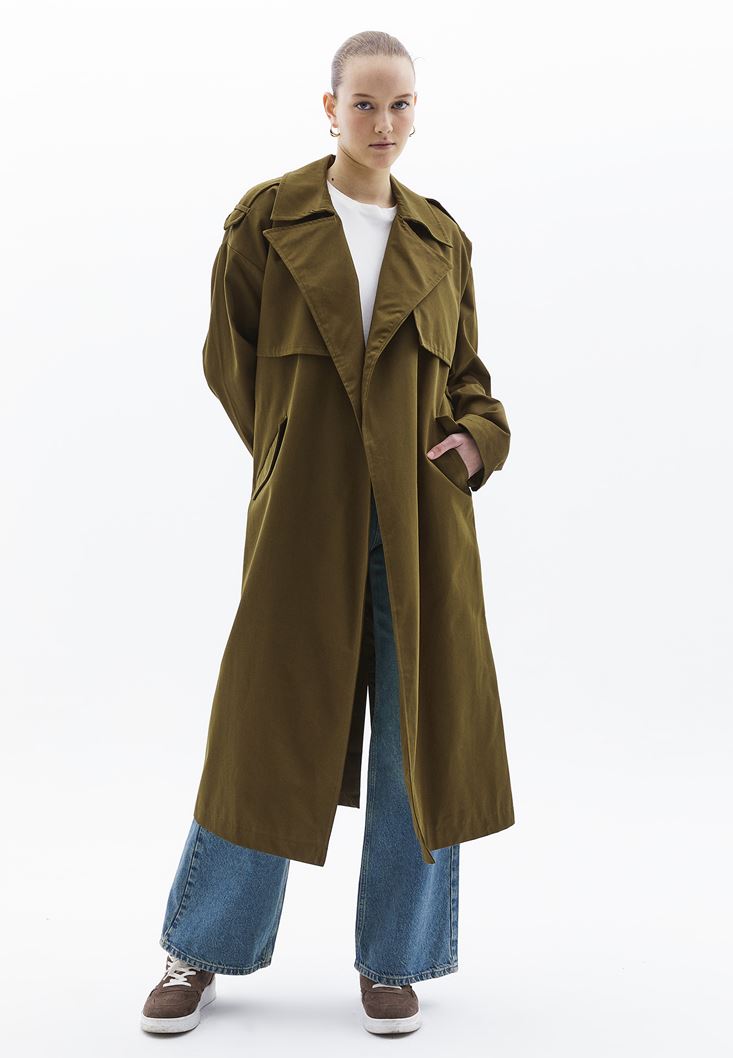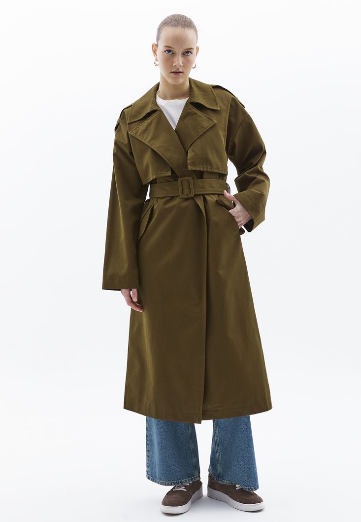 Kemerli Trençkot ve Denim Pantolon Kombini