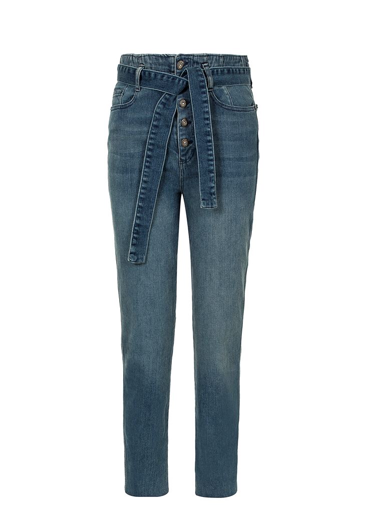 Lacivert Kemerli Yüksek Bel Denim Pantolon