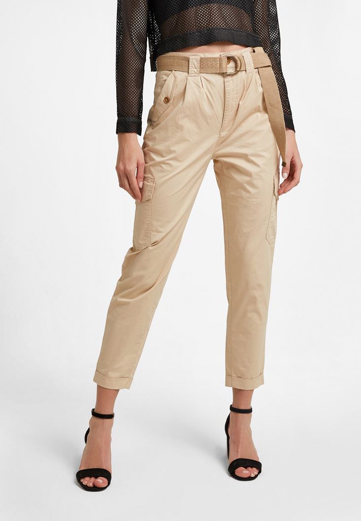 • Bayan Krem Kemerli Yüksek Bel Kargo Pantolon