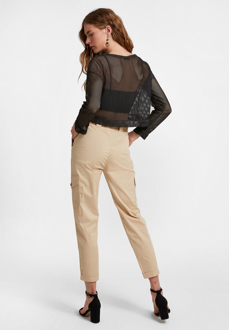 Kemerli Yüksek Bel Kargo Pantolon modeli kesimi, duruşu ve dokusu ile her zaman severek kombinleyebileceğiniz kadın pantolon modelleri arasında. Pamuk içeriğinden dolayı dayanıklı ve yumuşak dokuya sahip olan kadın kargo pantolon, gün boyu konforlu hissetmenizi sağlar. Tasarımda kullanılmış olan cep detayları ile doğal bir şık sağlayan kadın pantolon modeli dikkat çekici kemer ile de spor bir şıklık yakalamakta. Kargo pantolon modeli, OXXO'nun tarzınızı ön plana çıkarırken konforlu hissetmenizi sağlayacak pantolon modellerinden birisi.
