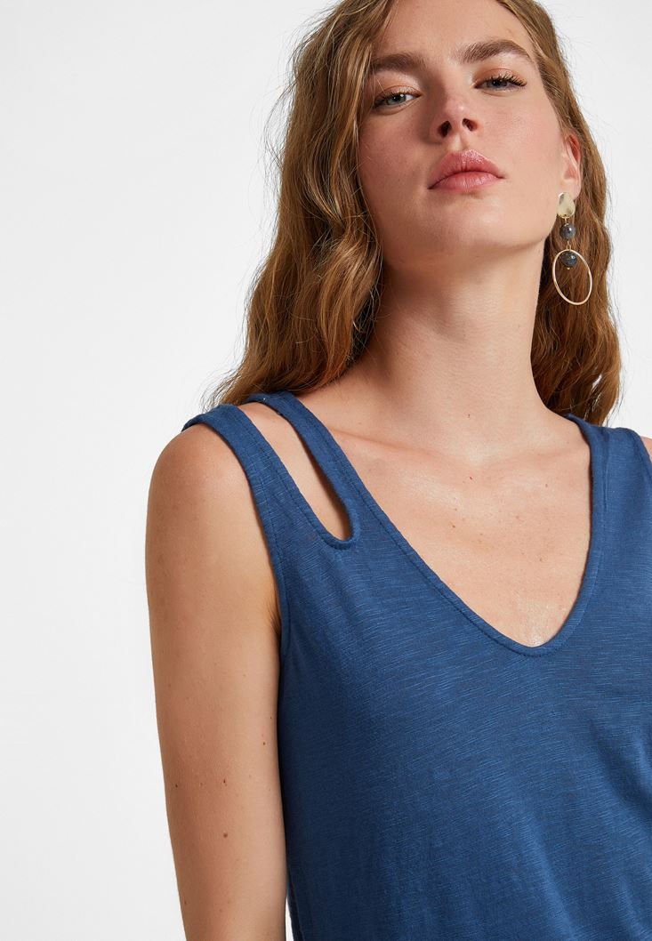 Kesik Detaylı Atlet modeli, modal ve pamuk içerikli mükemmel dokusu ile yeni sezonda sizlere sunuluyor. Kalın askılı atlet modeli, önünde ve arkasında bulunan V yaka kesimi ile feminen görünüm elde etmeniz için ideal bir seçenek oluyor. kadın atlet modeli, kalın askılarından birinde yer alan kesik detayı ile farklılık yaratan bir parça oluyor. Yüksek veya orta belli pantolonlarla kullanabileceğiniz kalın askılı atlet modelini önce favorilerinize ekleyebilirsiniz. Ayrıca kot şortlarla ve eteklerle de bir araya getirebileceğiniz kadın atlet modelini dilediğiniz gibi tarzınıza adapte edebilirsiniz. Oxxo'nun hayran bırakan dokularla ve dikkat çeken detaylarla sizlere sunduğu kadın atlet modelleri ile kombinlerinizi tamamlayabilirsiniz.