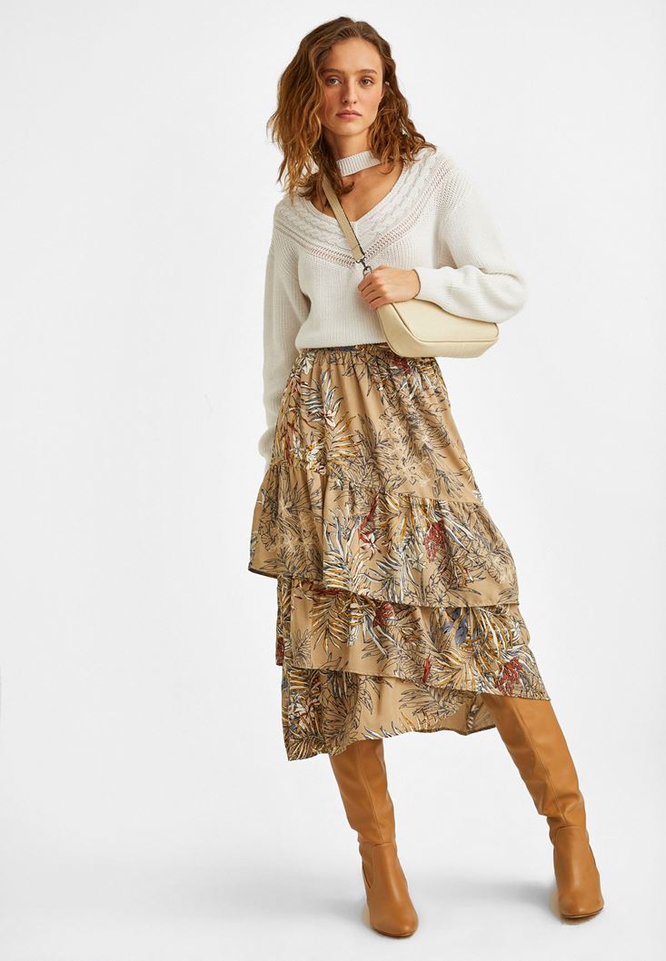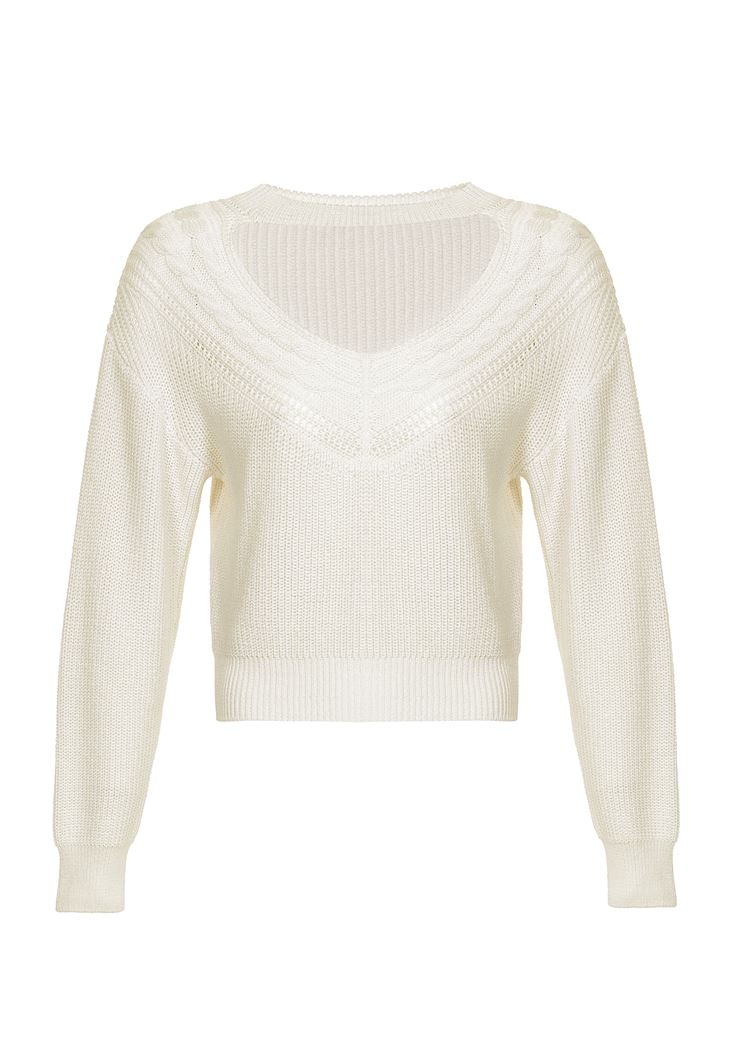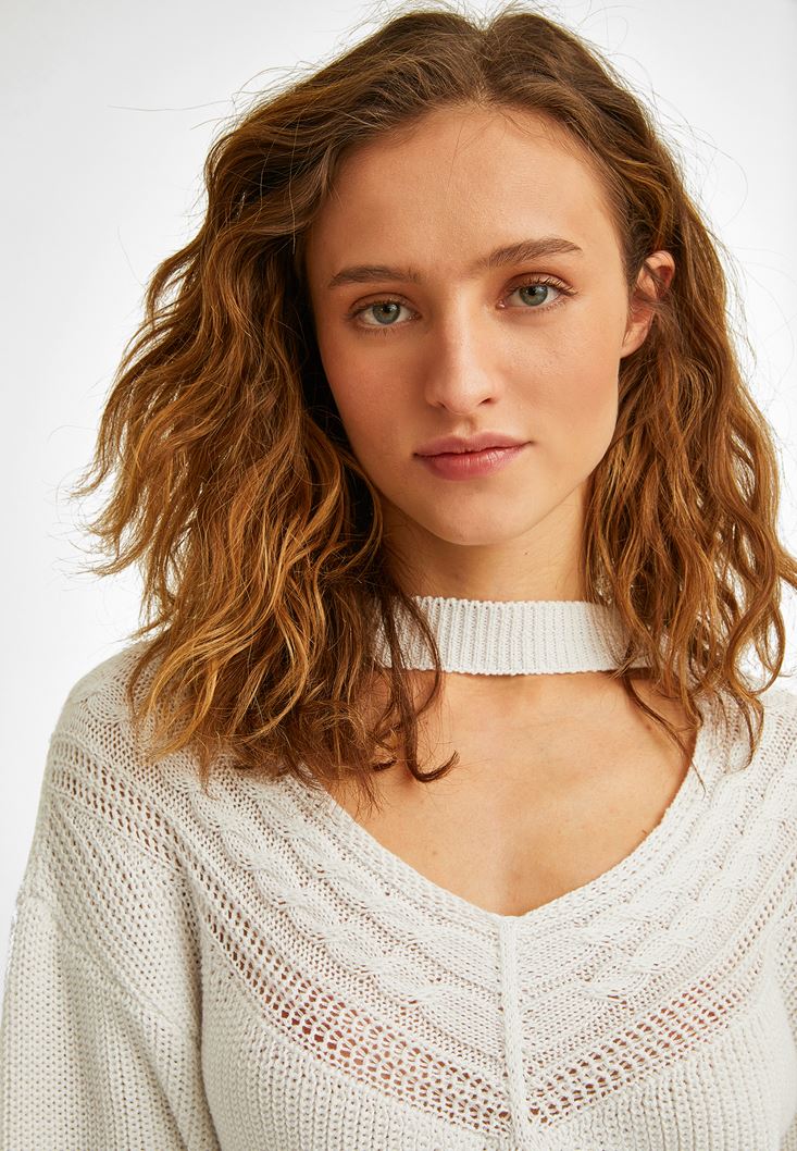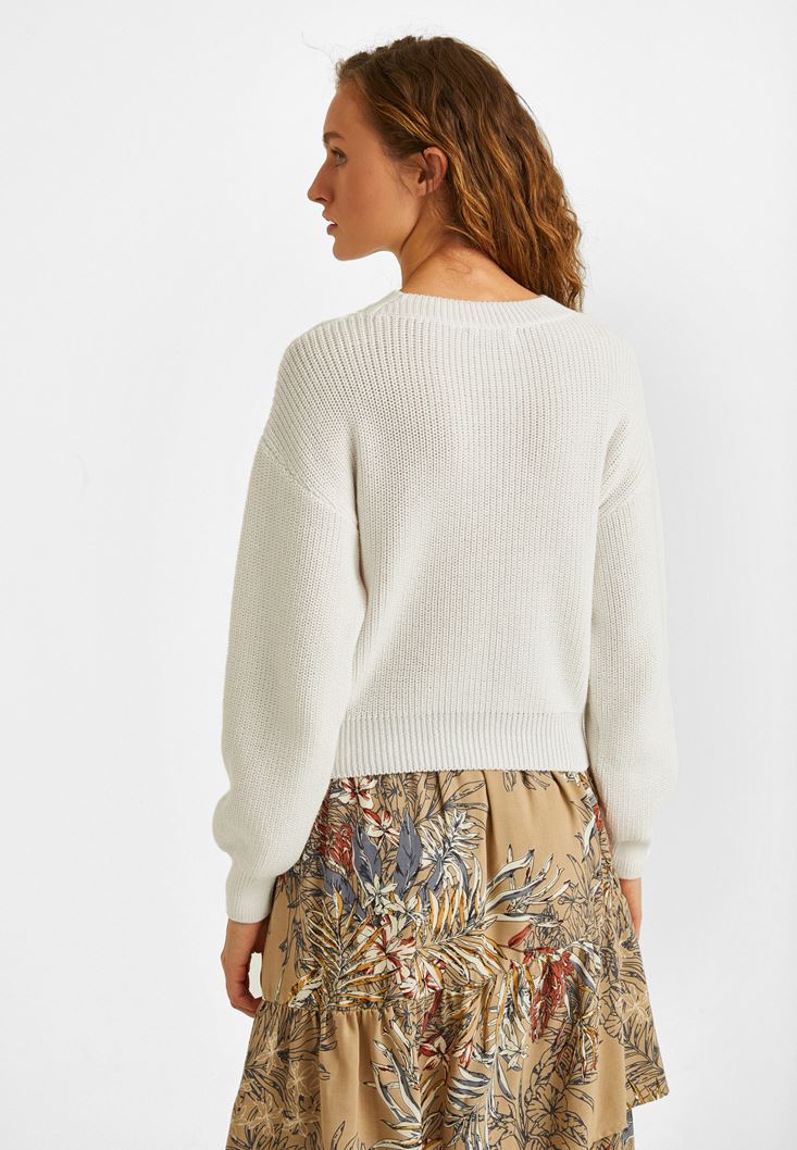 Krem Kesik Detaylı Kazak
