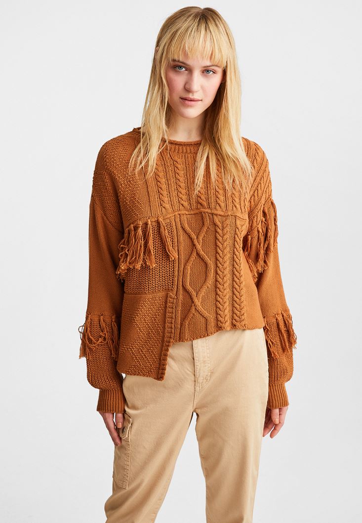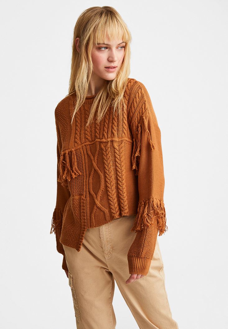 Kesik Detaylı Örgü Kazak modeli, pamuklu içeriğe sahip olan ve sıcaklık sunan dokusu ile yeni sezonda sizlerle buluşuyor. kadın kazak modeli, saç örgüsü motifleri ve püskül detayları ile fazlasıyla ön plana çıkıyor. Örgü kazak modeli, bisiklet yaka detayı ve asimetrik kesimi sayesinde trikolar arasında fark yaratıyor. kadın kazak modeli ile bulunduğunuz her ortamda dikkat çekecek kombinlere ulaşabilirsiniz. Örgü kazak modelini, yüksek belli pantolonlar veya midi etekler ile kullanarak eşsiz bir tarz yaratabilirsiniz. Ceketlerle ve kabanlarla da stilinizi üst seviyeye taşıyacak olan kadın kazak modelini favorilerinize ekleyebilirsiniz. Oxxo'nun dikkat çekici ayrıntılarla ve farklı dokularla sizlere sunduğu kadın kazak modelleri ile tarzınızı canlandırabilirsiniz.
