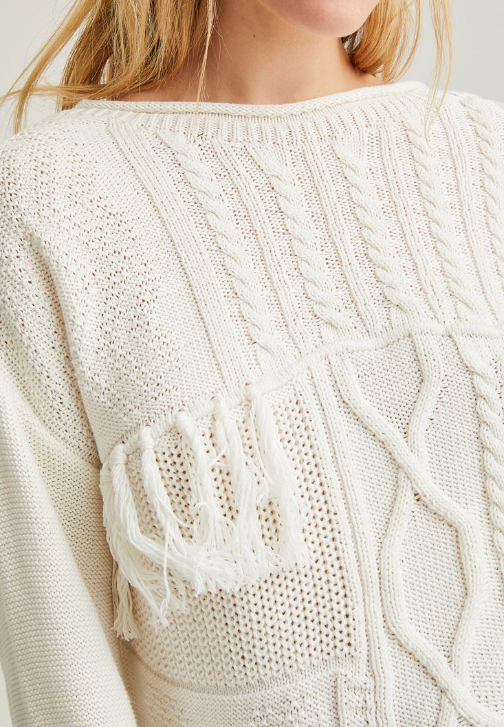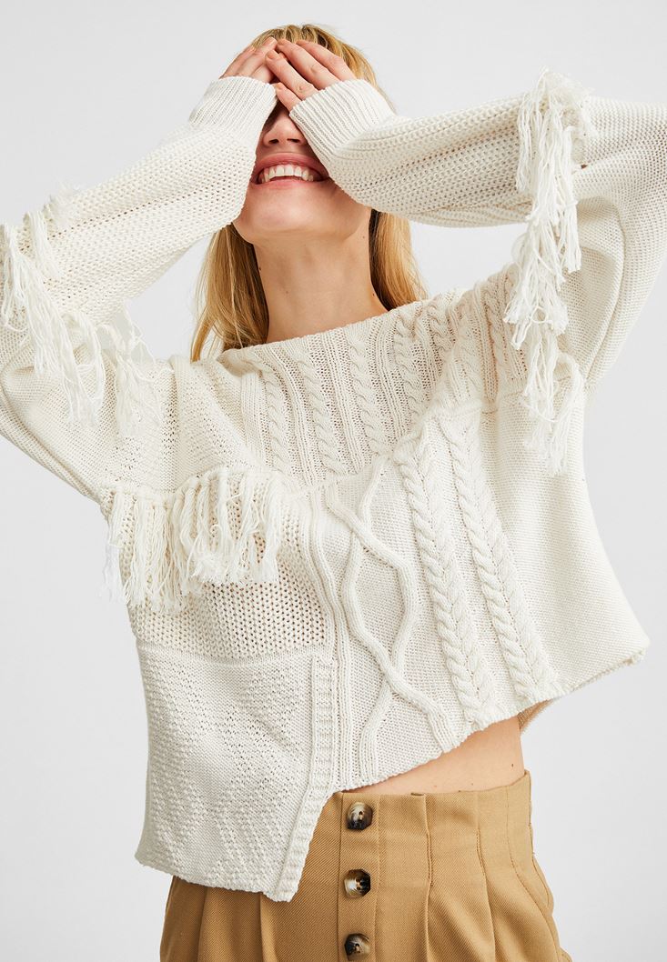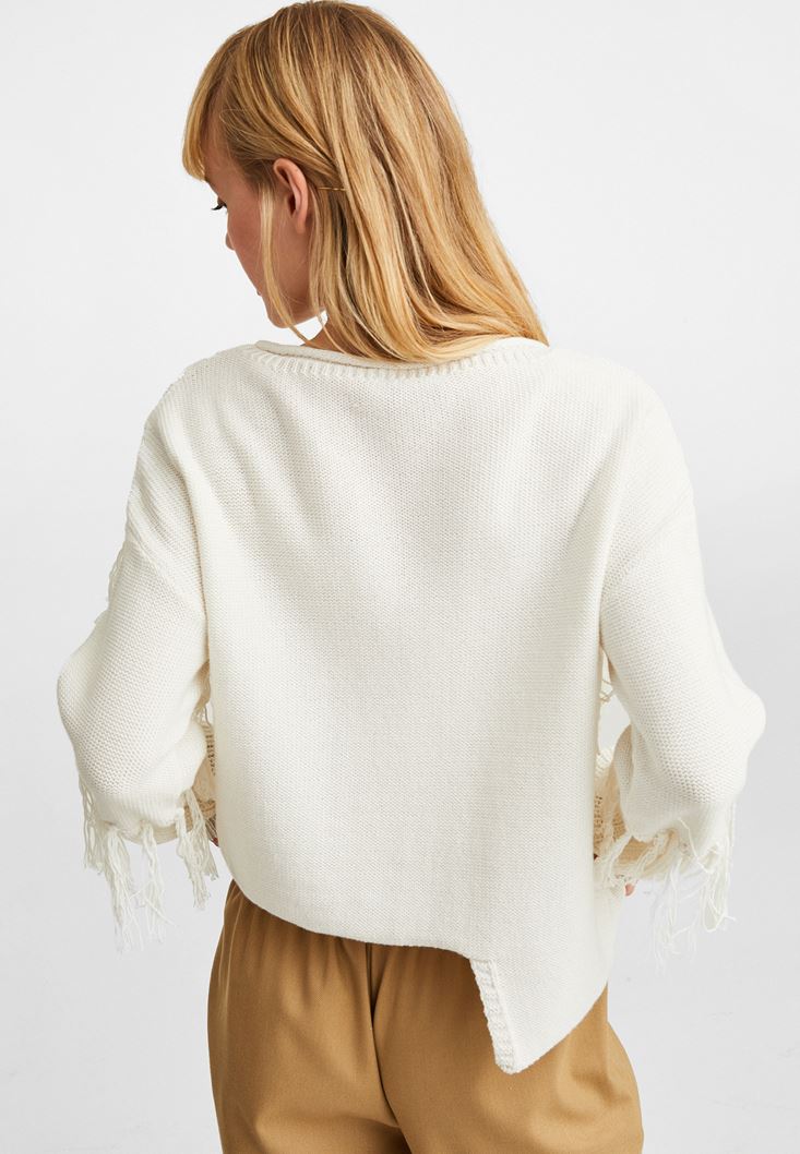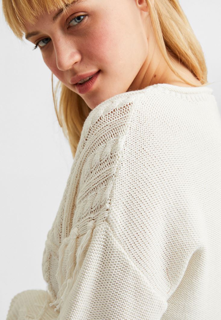 • Bayan Krem Kesik Detaylı Örgü Kazak
