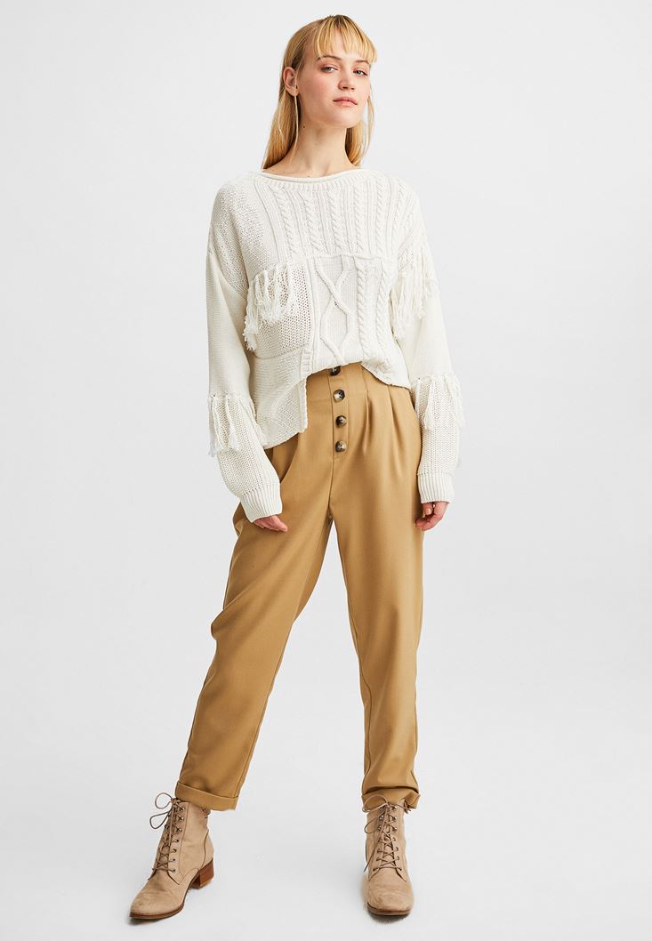 Kesik Detaylı Örgü Kazak modeli, pamuklu içeriğe sahip olan ve sıcaklık sunan dokusu ile yeni sezonda sizlerle buluşuyor. kadın kazak modeli, saç örgüsü motifleri ve püskül detayları ile fazlasıyla ön plana çıkıyor. Örgü kazak modeli, bisiklet yaka detayı ve asimetrik kesimi sayesinde trikolar arasında fark yaratıyor. kadın kazak modeli ile bulunduğunuz her ortamda dikkat çekecek kombinlere ulaşabilirsiniz. Örgü kazak modelini, yüksek belli pantolonlar veya midi etekler ile kullanarak eşsiz bir tarz yaratabilirsiniz. Ceketlerle ve kabanlarla da stilinizi üst seviyeye taşıyacak olan kadın kazak modelini favorilerinize ekleyebilirsiniz. Oxxo'nun dikkat çekici ayrıntılarla ve farklı dokularla sizlere sunduğu kadın kazak modelleri ile tarzınızı canlandırabilirsiniz.
