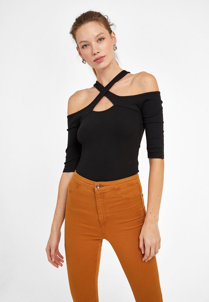 Kesik Yaka Detaylı Tişört modeli, dikkat çeken kesimi ve renkleriyle göz dolduran bir tasarım olarak sizlerle buluşuyor. Oxxo kadın tişört modeli, pamuklu dokusu ve yakasında çapraz gelen askılar sayesinde hem yumuşaklık hem de tarz görünümü aynı anda size ulaştırıyor. kadın skinny jean modelleri ve topuklu ayakkabı modelleri kullanarak yaptığınız kombinlerde, kesik yaka detaylı tişört modeli tercih ederek, stilinizi detayların büyüsüne bırakabilirsiniz. Vücudunuzu saran kadın tişört modeli ile bir beden ince gösteren Oxxo skinny pantolon modellerini birlikte kullandığınızda, fit ve şık bir görüntü oluşturabilirsiniz. Oxxo’nun daima stilinizi önemseyen detaylarla sunduğu kadın tişört modelleri ile yaptığınız kombinlerin keyfini çıkarabilirsiniz.