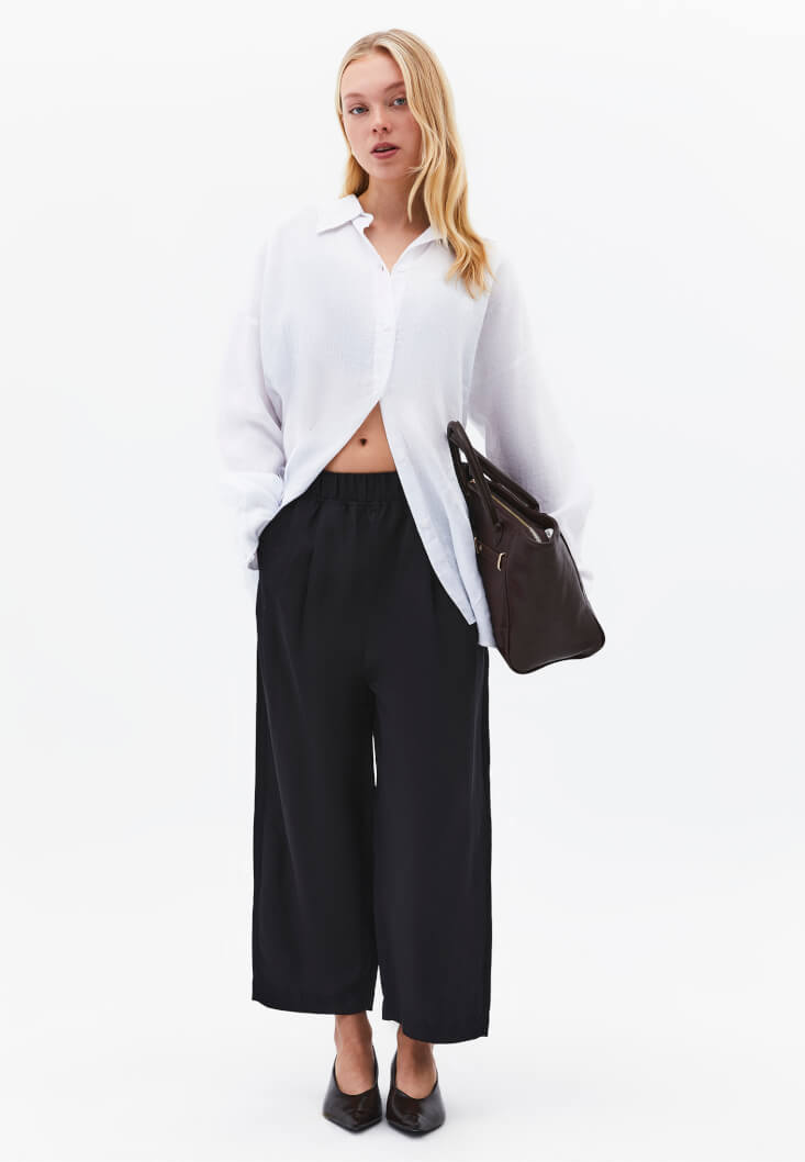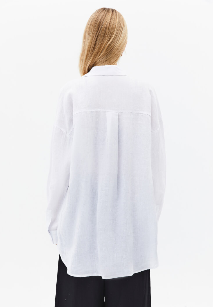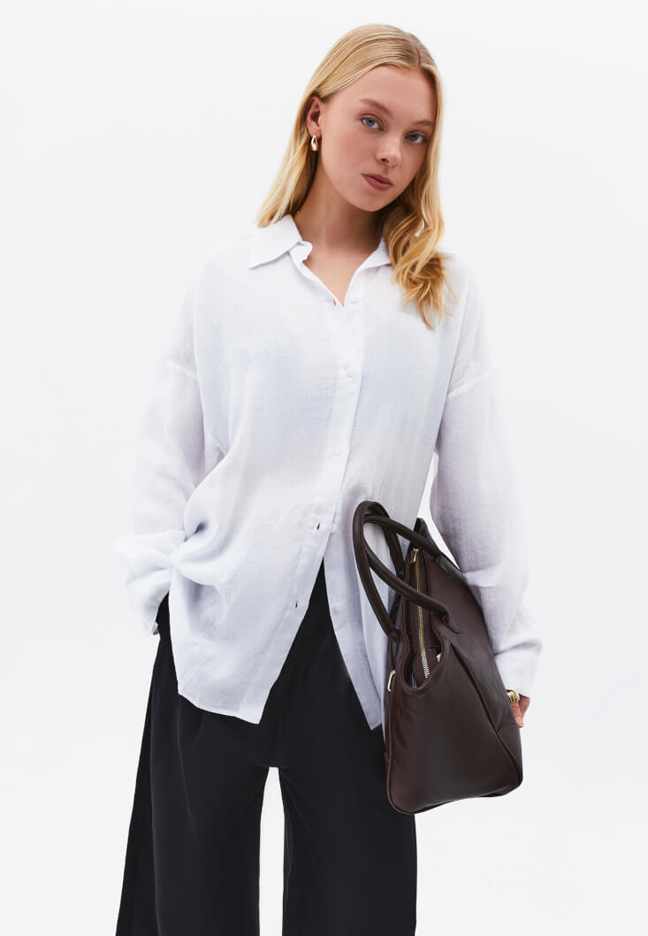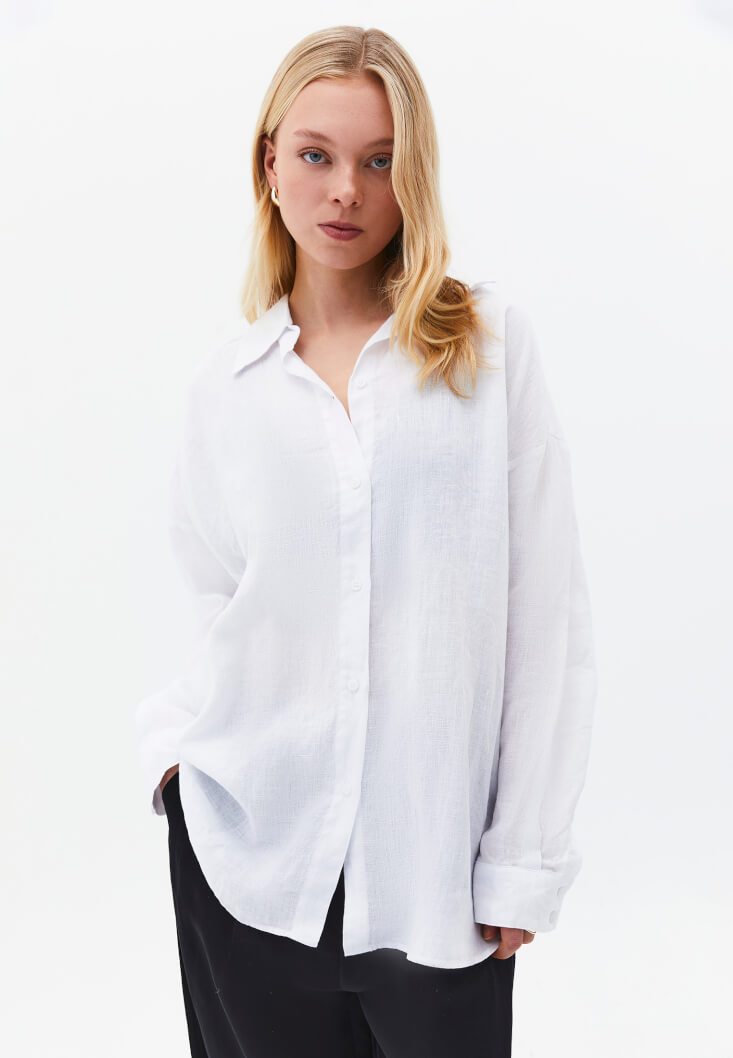 • Bayan Beyaz Keten Düğmeli Gömlek
