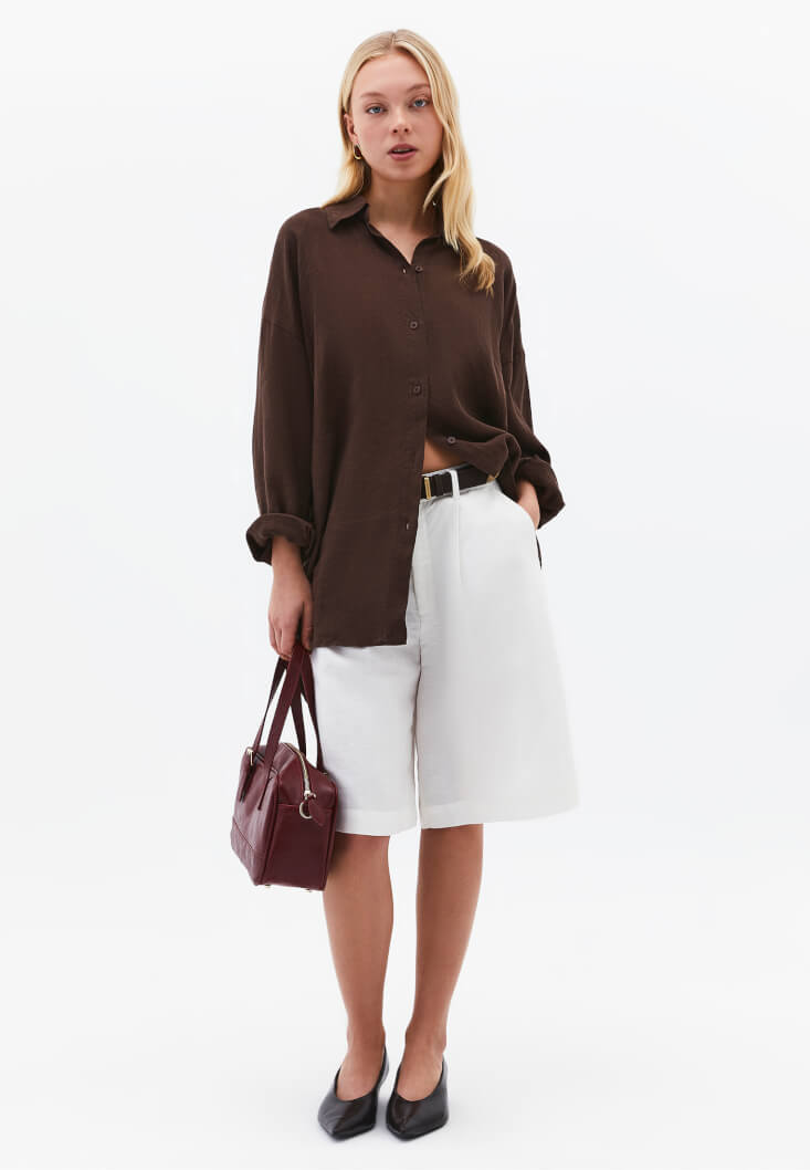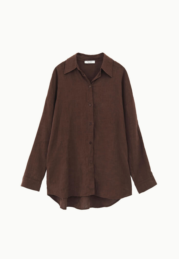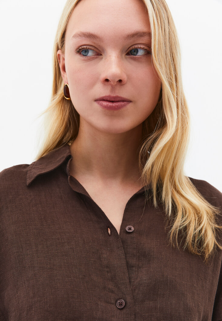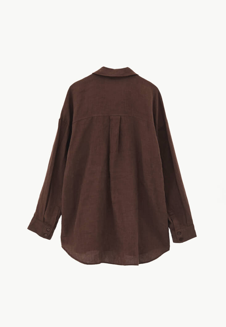 • Bayan Kahverengi Keten Düğmeli Gömlek