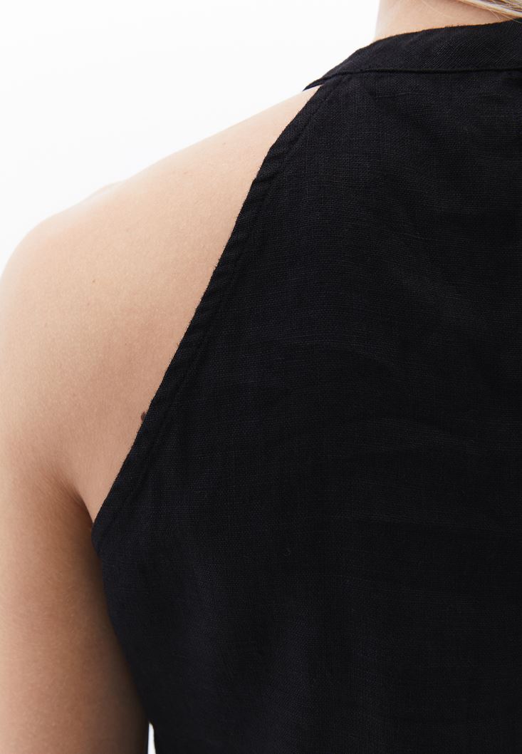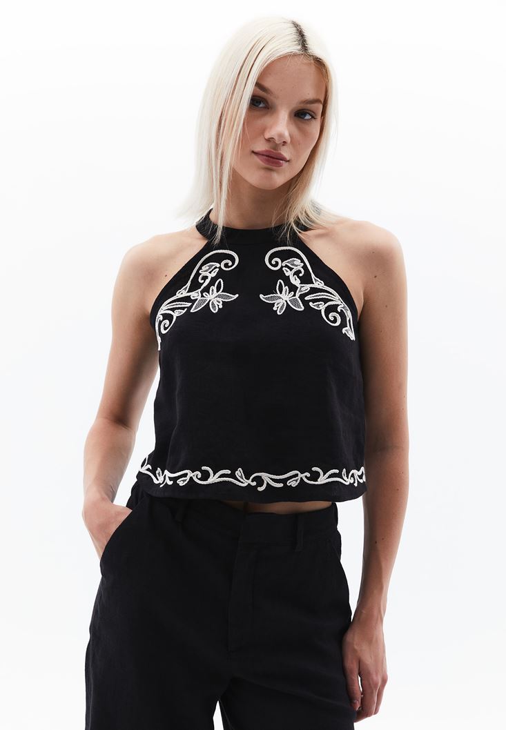 • Bayan Siyah Keten Halter Yaka Crop Bluz