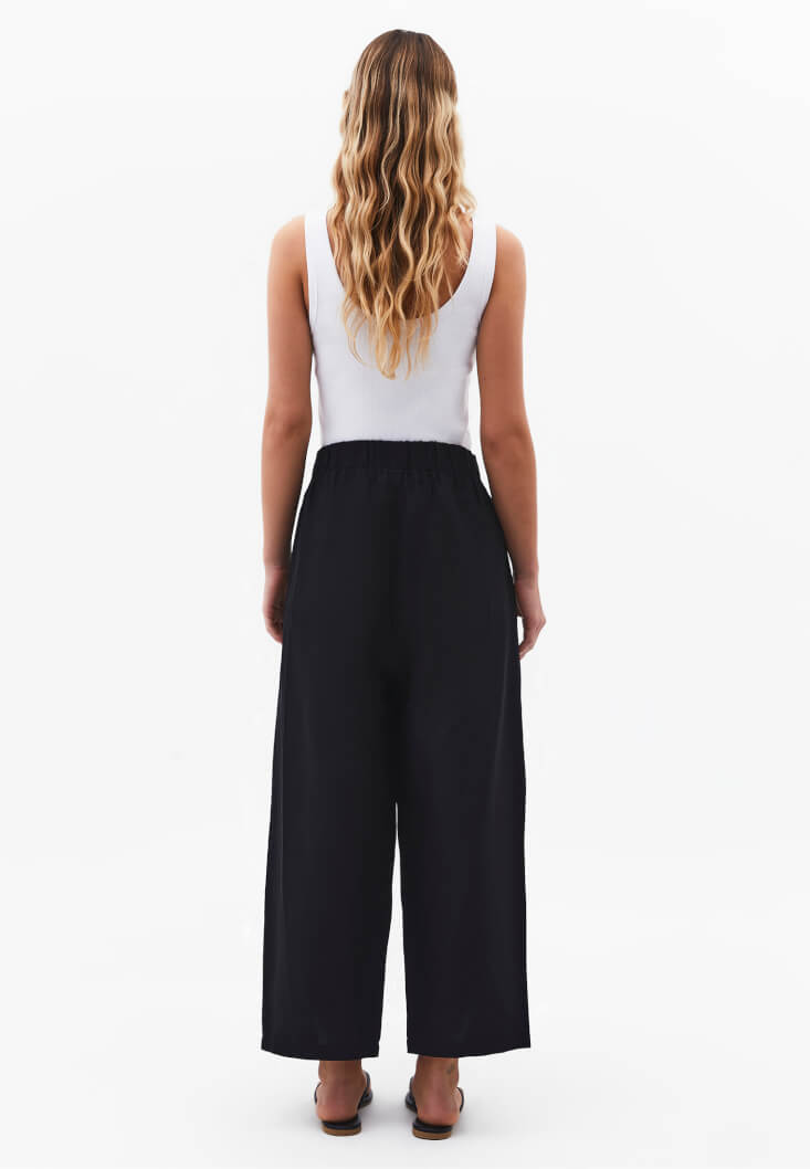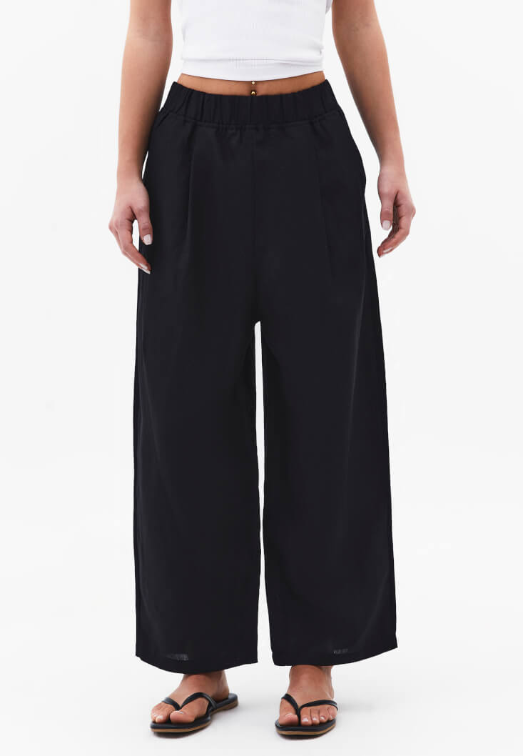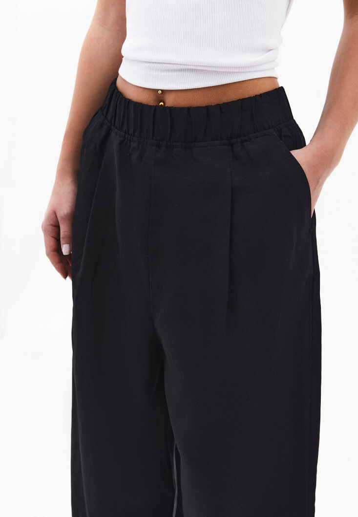 Siyah Keten Karışımlı Balon Pantolon ( TENCEL™ )