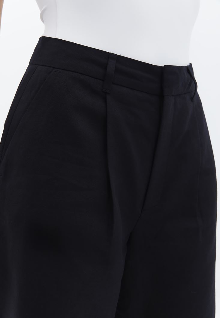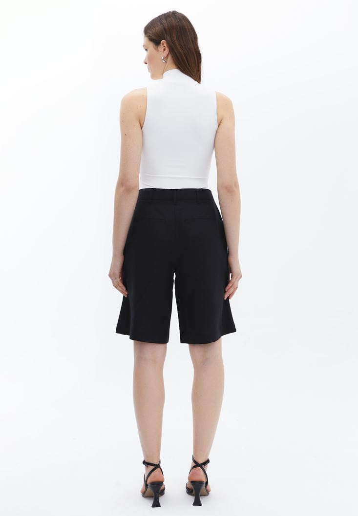• Bayan Siyah Keten Karışımlı Bermuda Şort ( TENCEL™ )