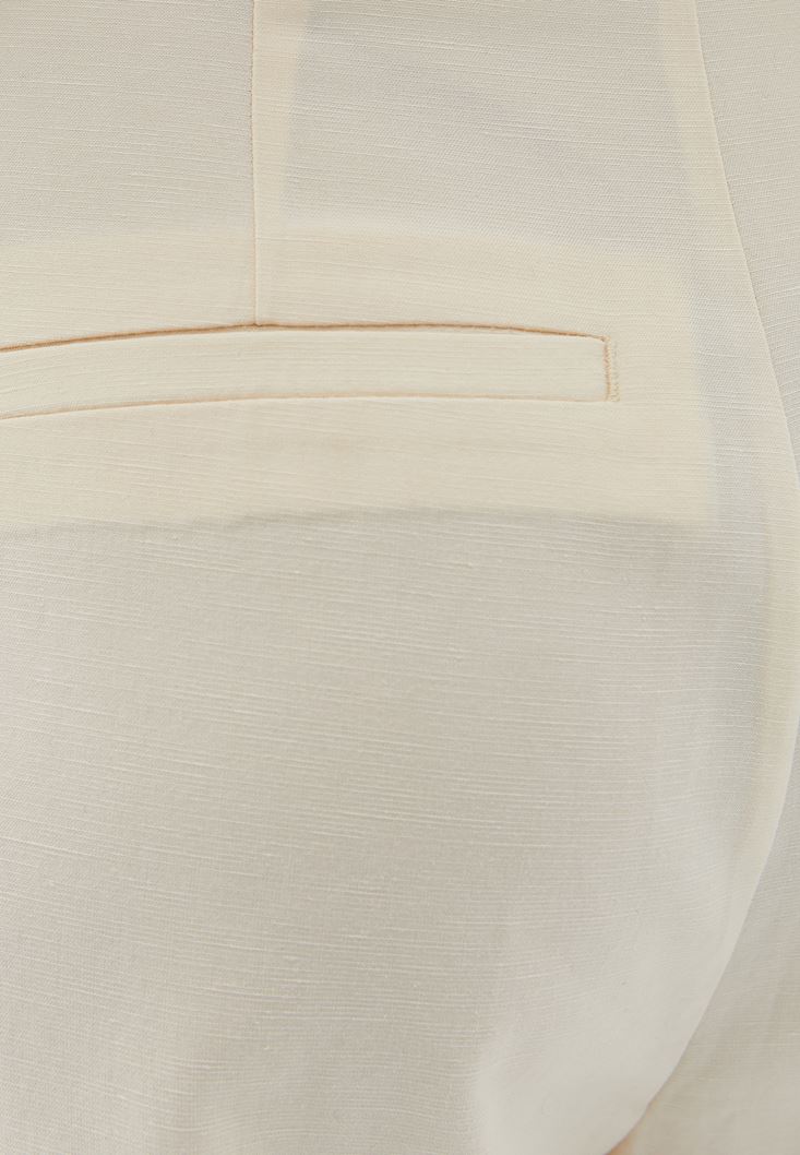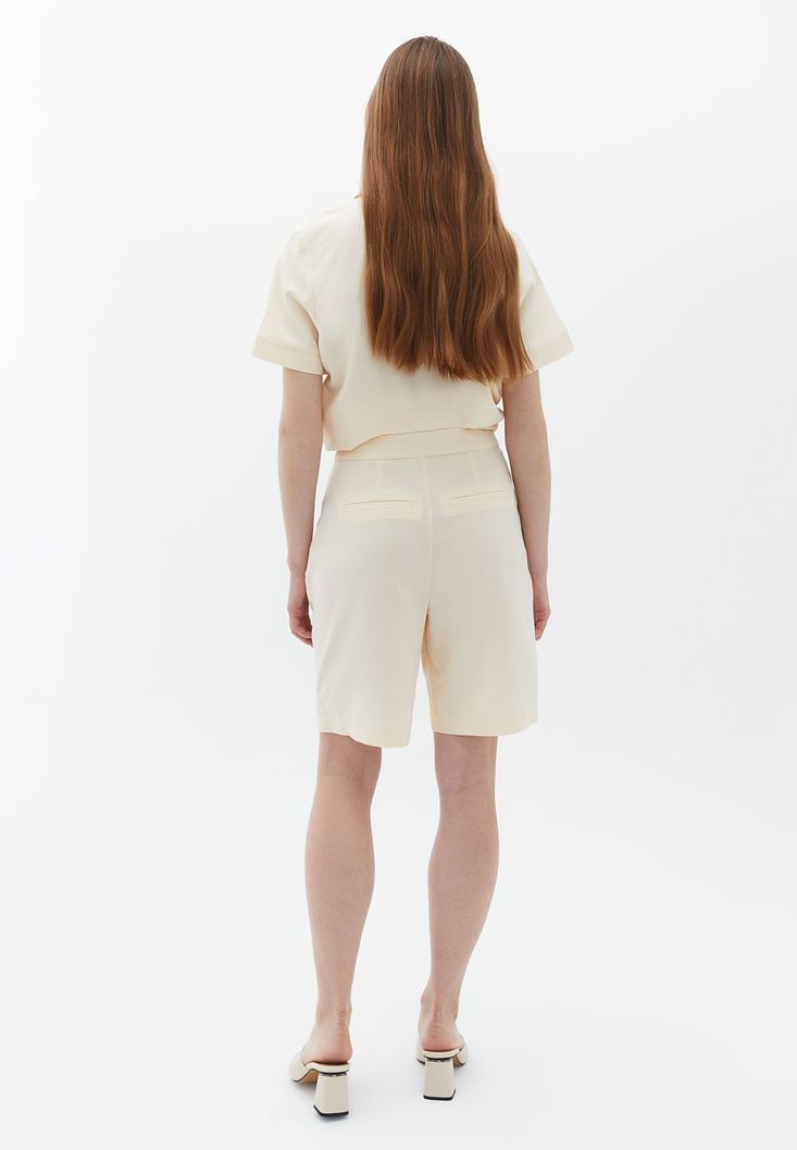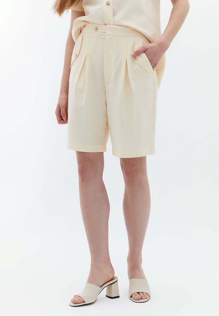 Bej Keten Karışımlı Bermuda Şort