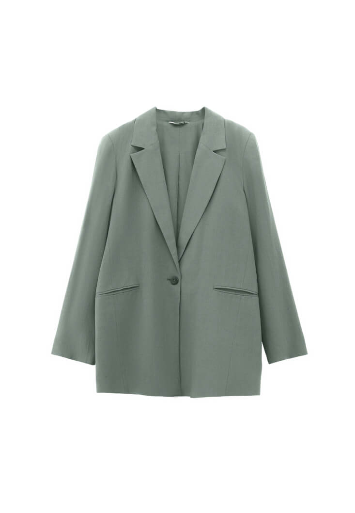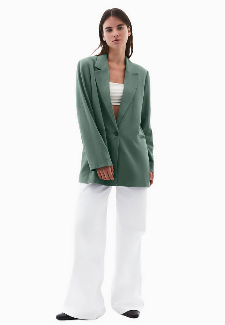 • Bayan Yeşil Keten Karışımlı Blazer Ceket