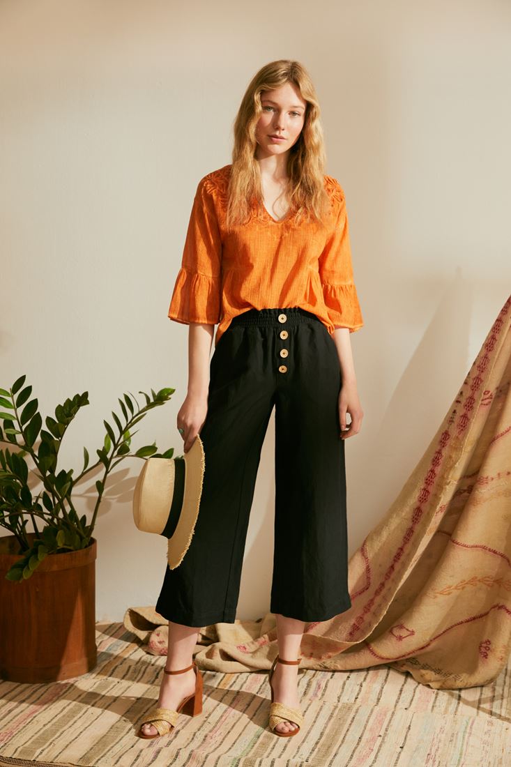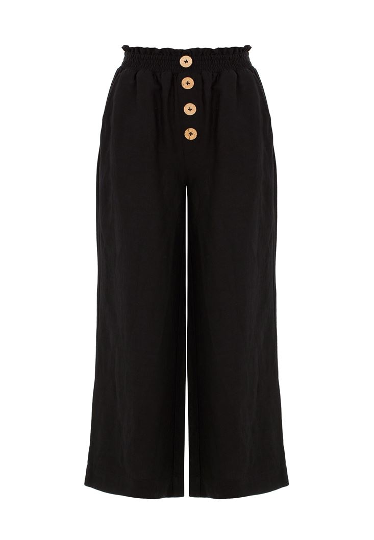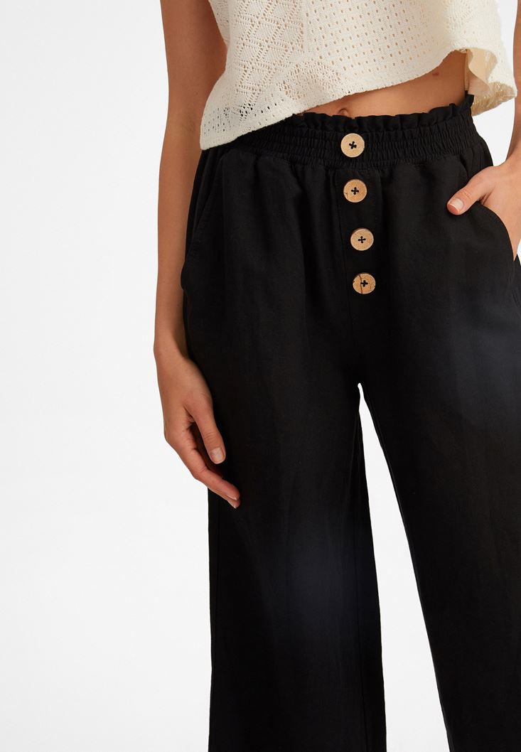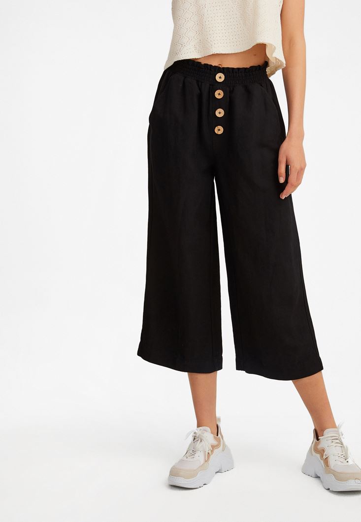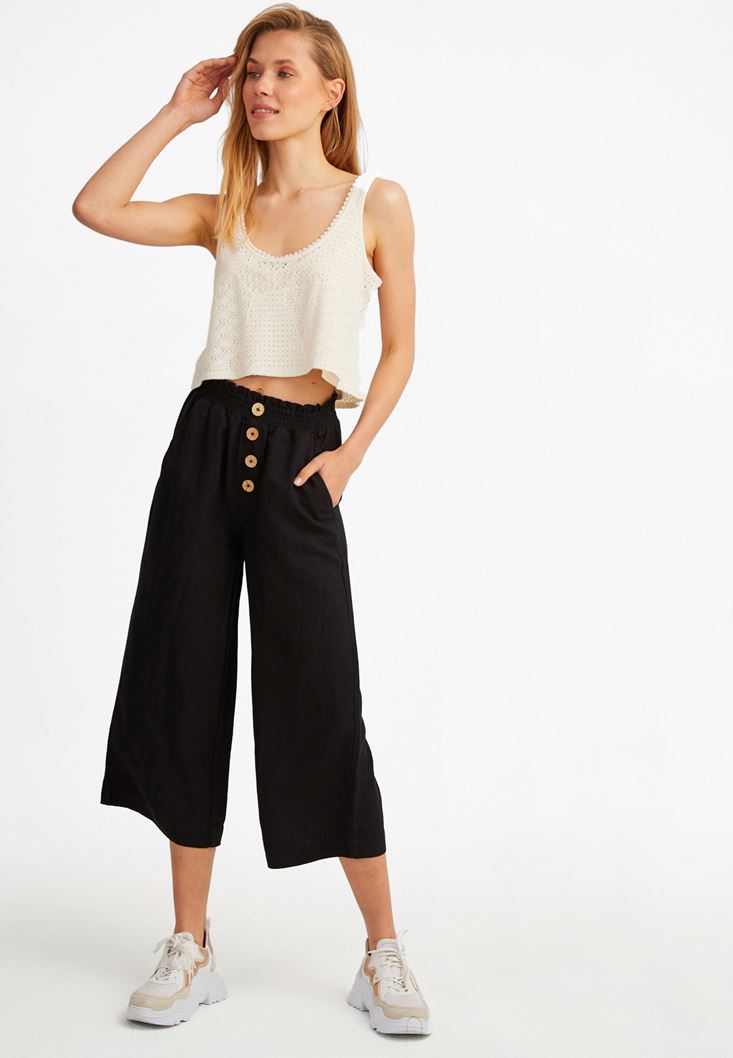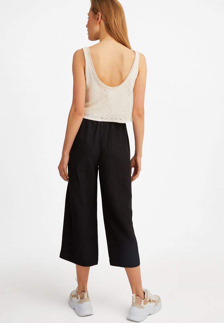 • Bayan Siyah Keten Karışımlı Bol Pantolon