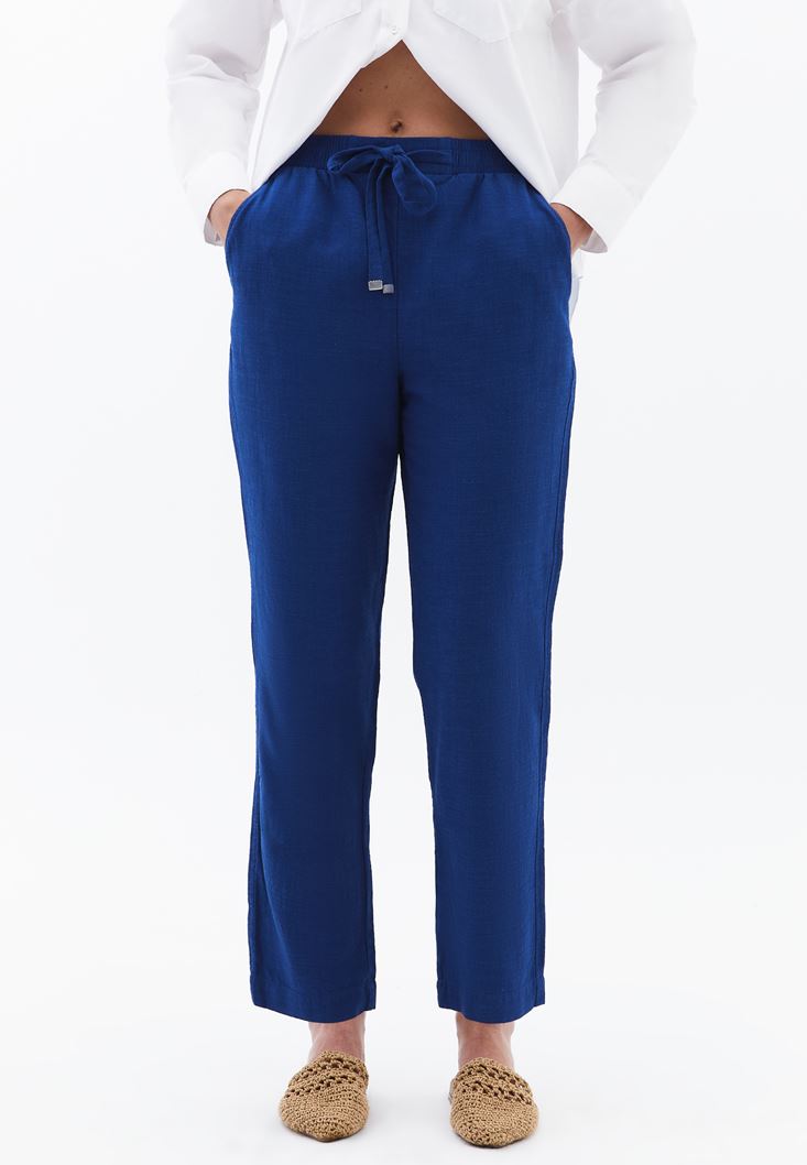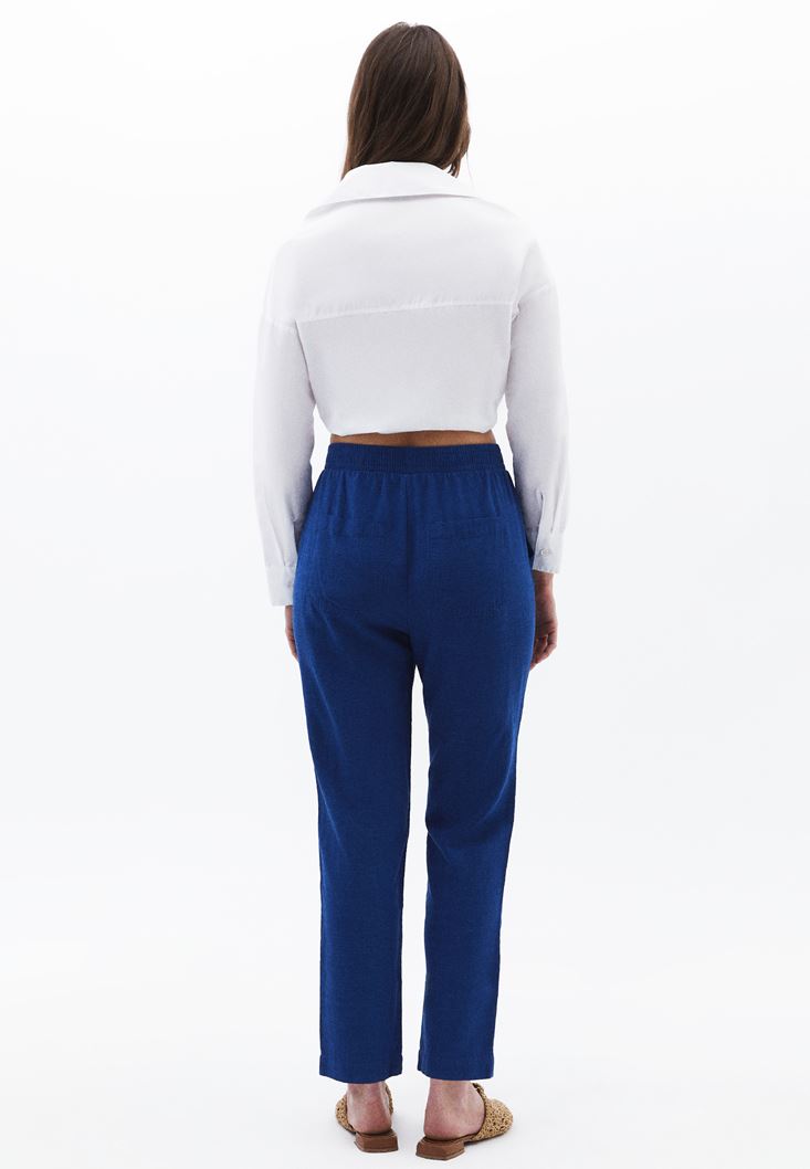• Bayan Mavi Keten Karışımlı Carrot-Fit Pantolon