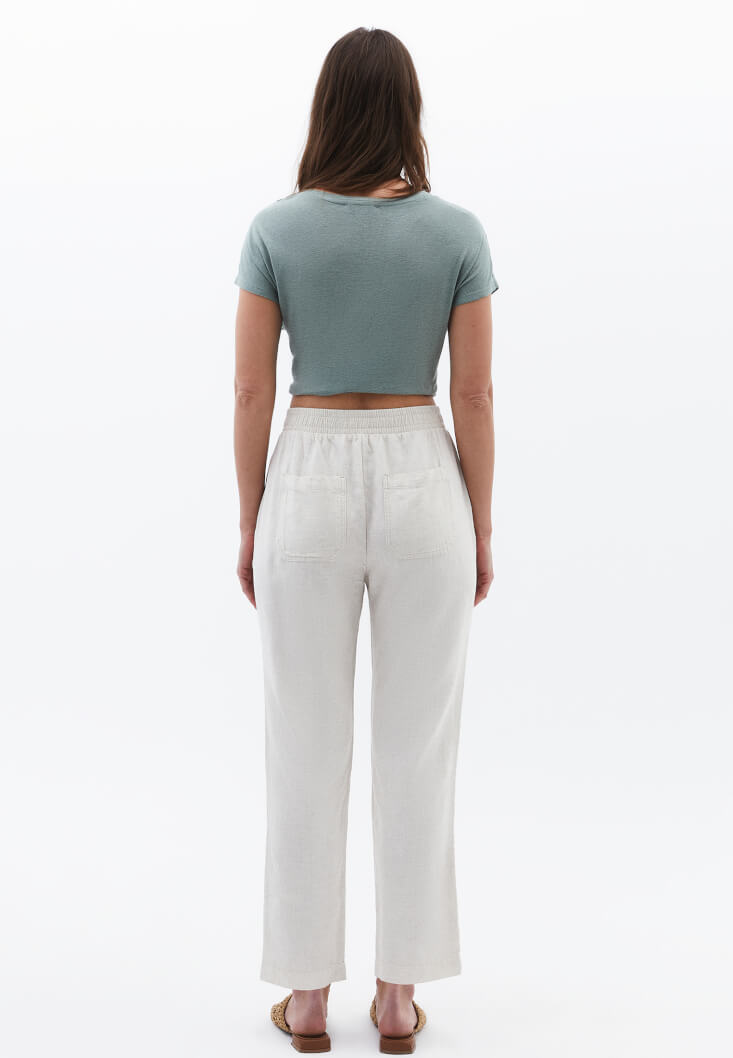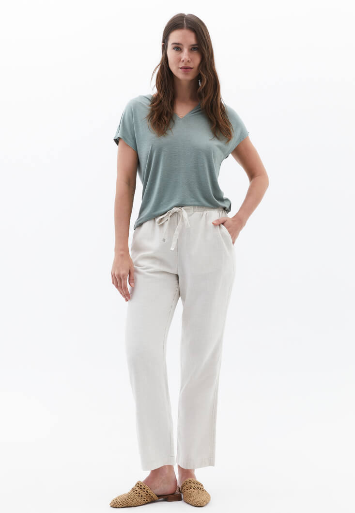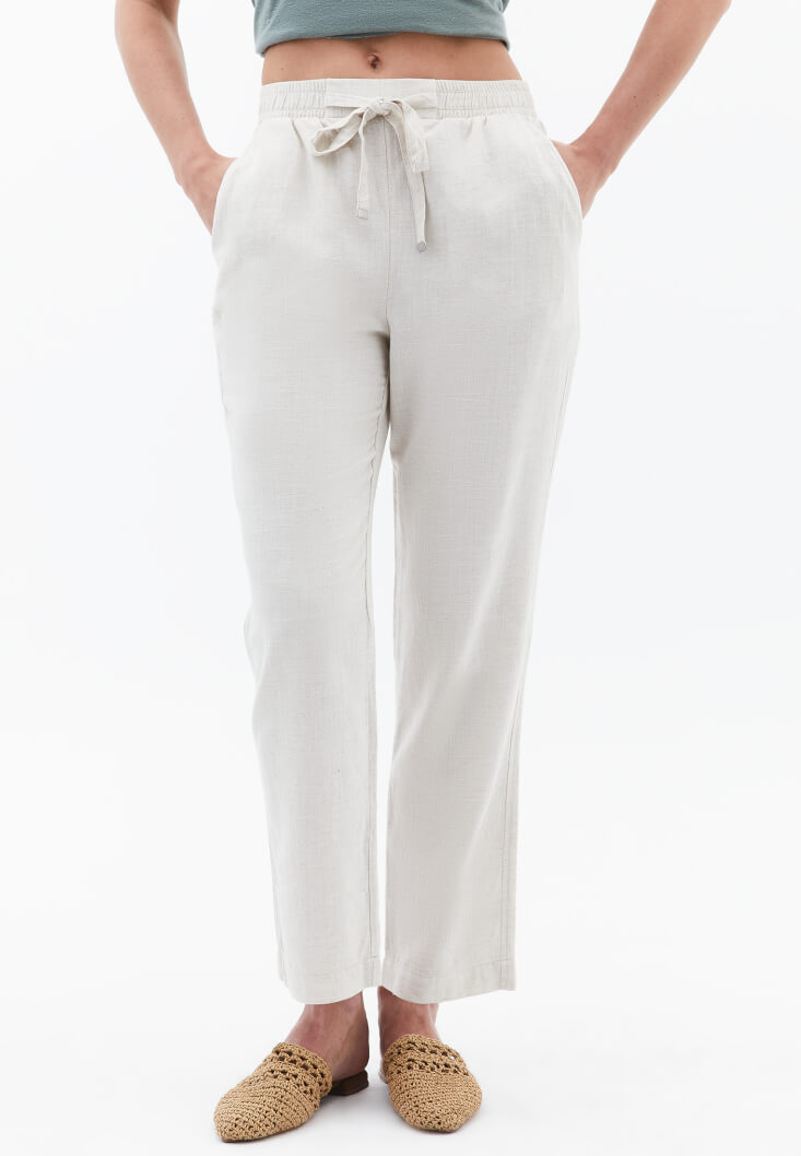 • Bayan Bej Keten Karışımlı Carrot-Fit Pantolon