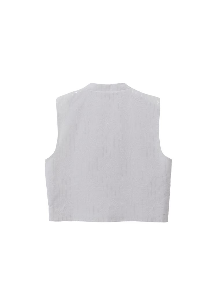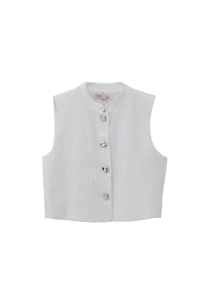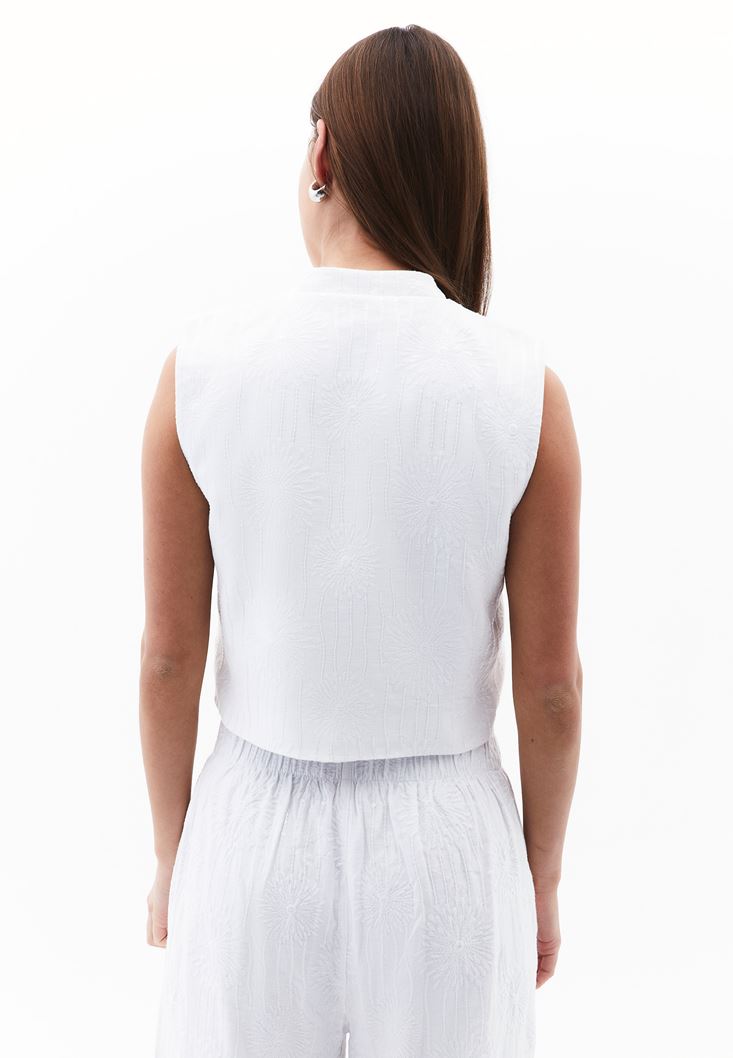 Beyaz Keten Karışımlı Crop Yelek