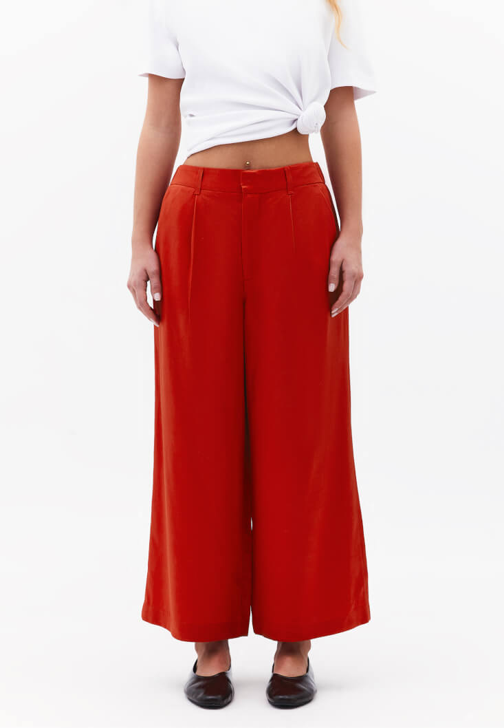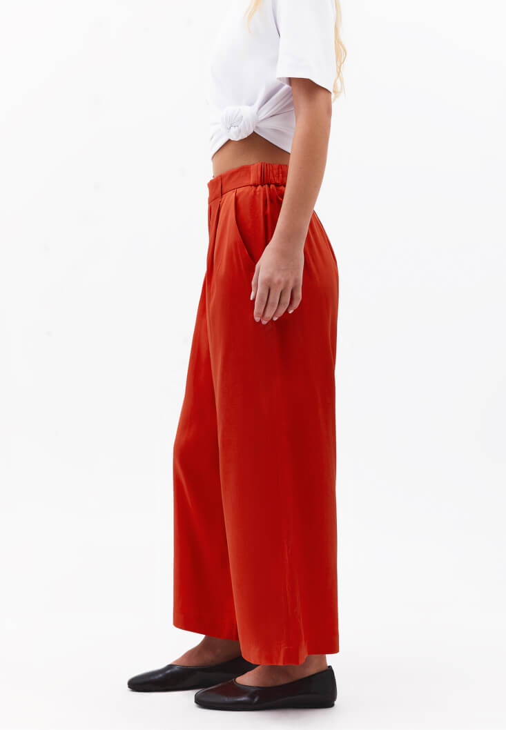 • Bayan Kırmızı Keten Karışımlı Culotte Pantolon