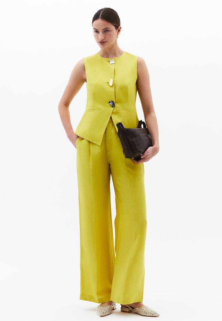 • Bayan Yeşil Keten Karışımlı Düğmeli Yelek ( TENCEL™ )