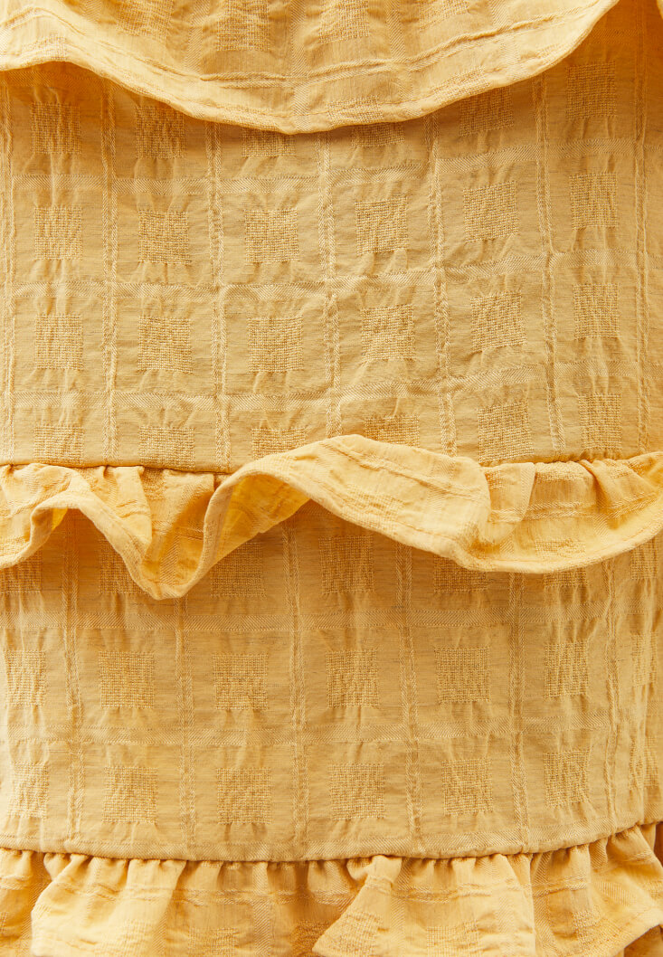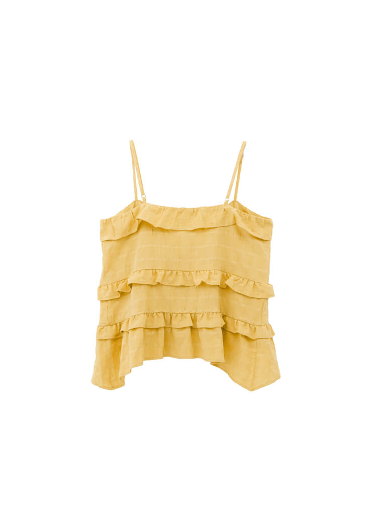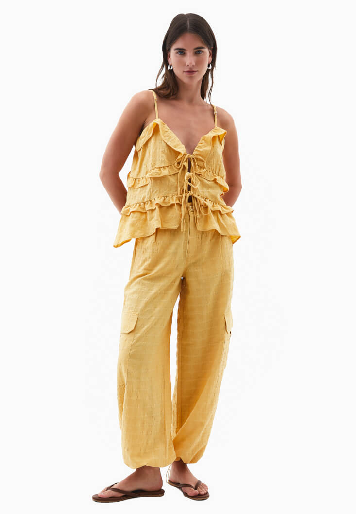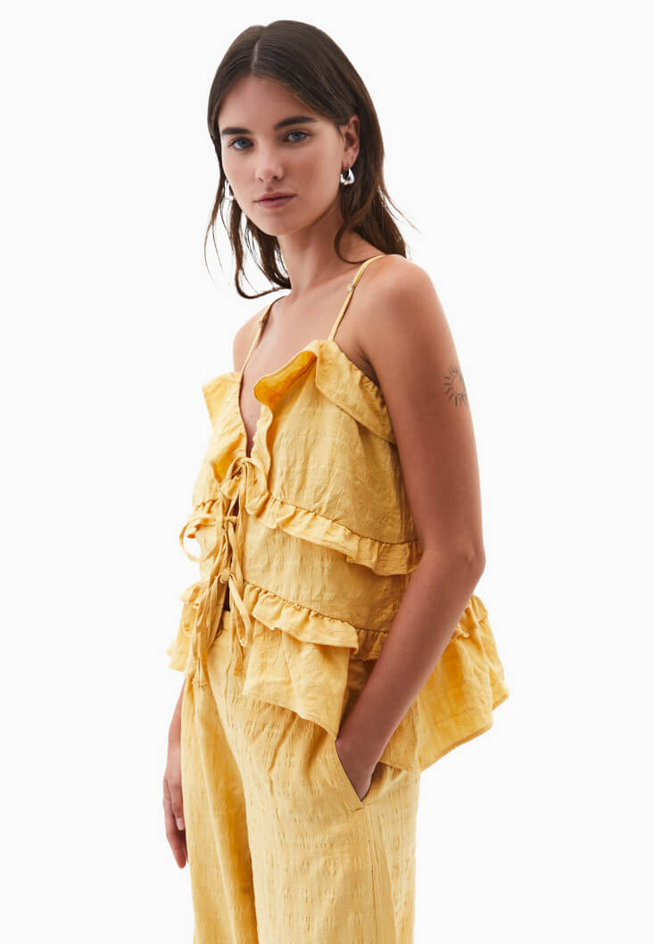 Sarı Keten Karışımlı Fırfırlı Bluz