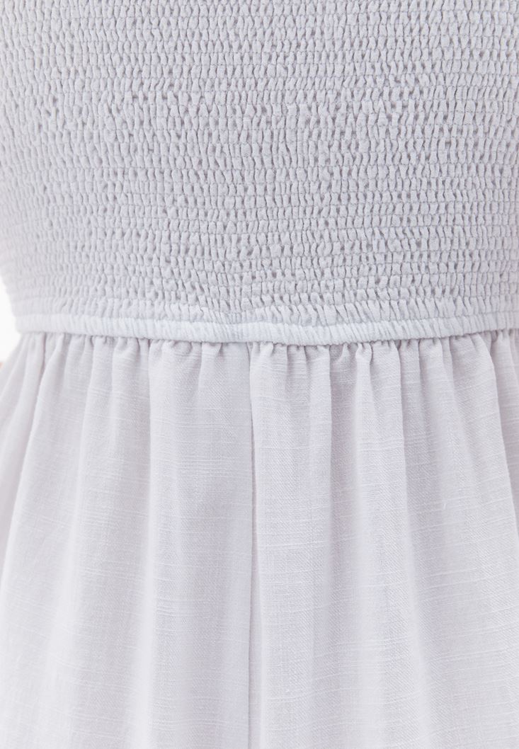 Beyaz Keten Karışımlı Gipeli Tulum