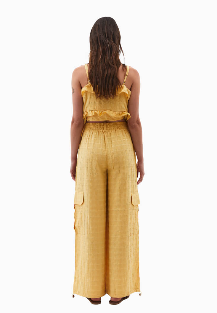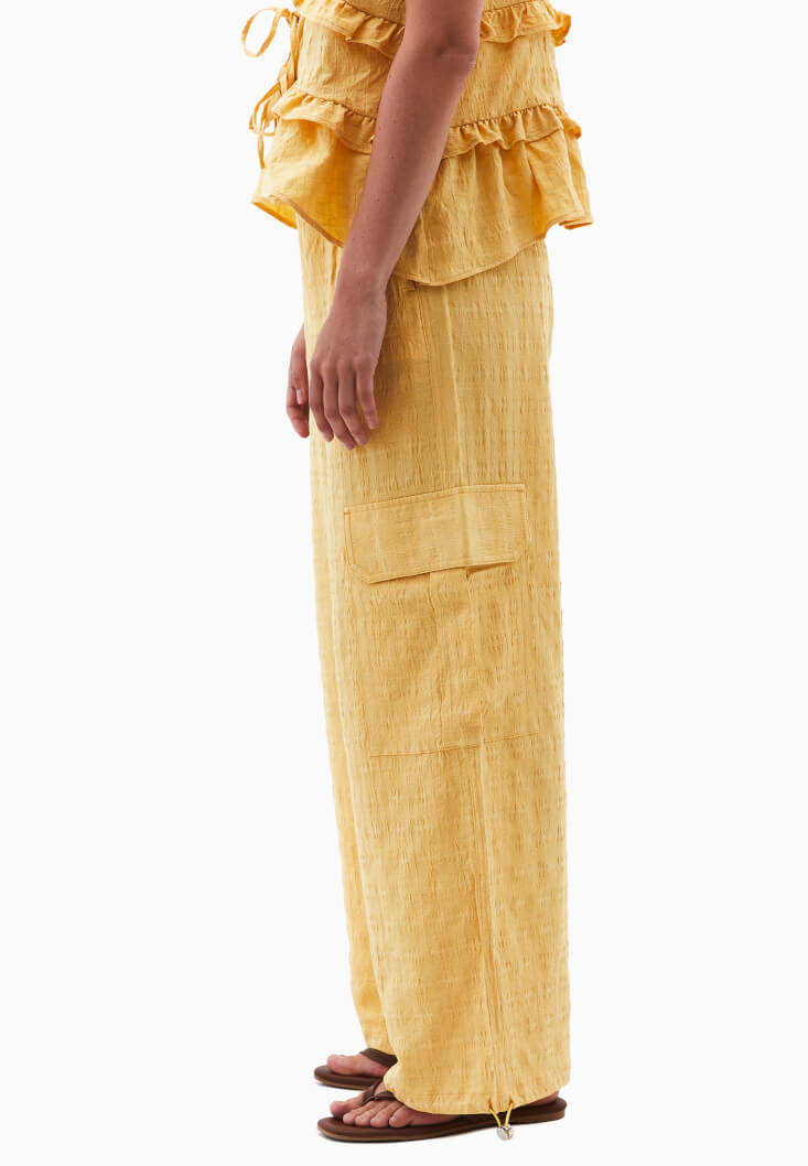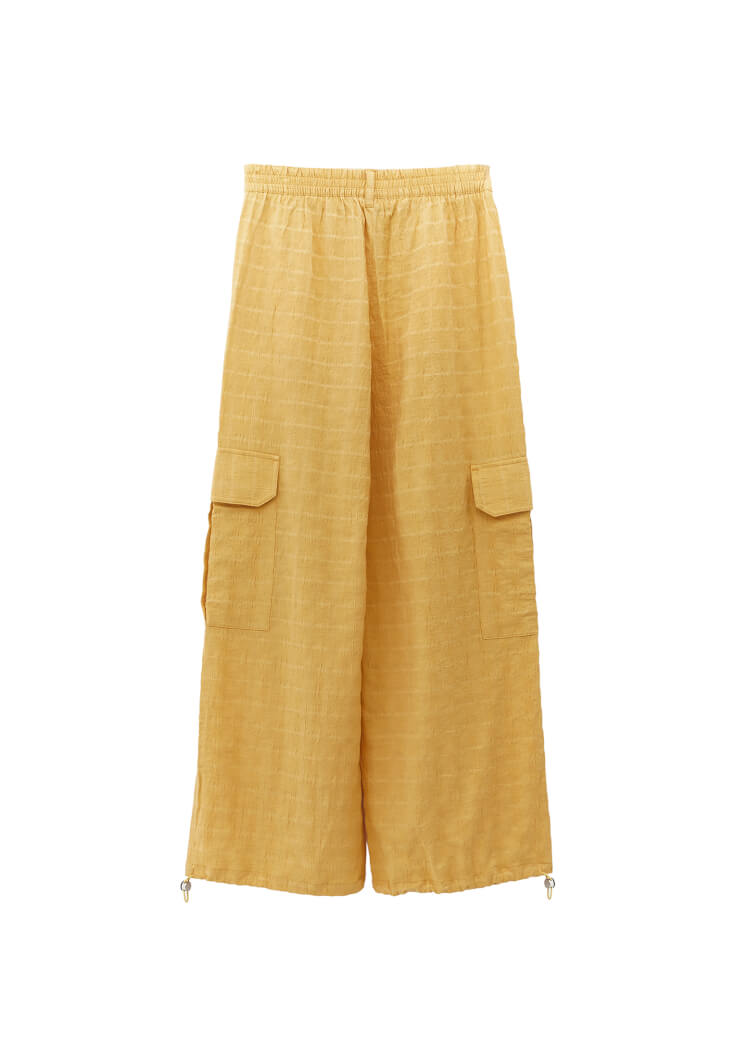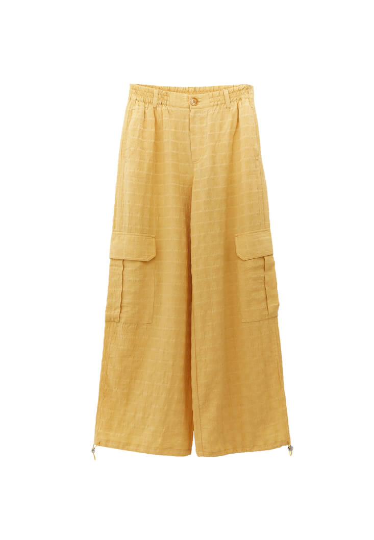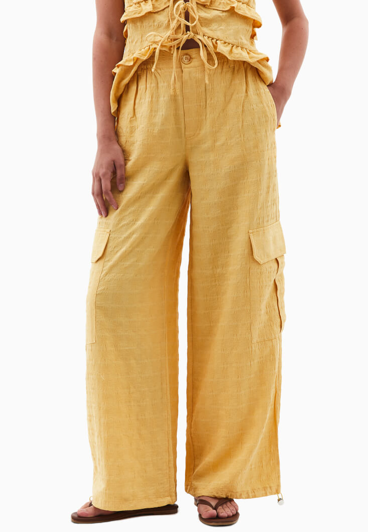 Sarı Keten Karışımlı Kargo Pantolon