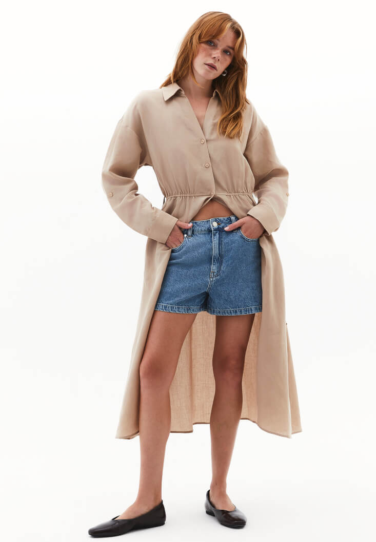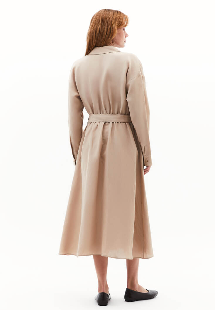 Bej Keten Karışımlı Kemerli Elbise (TENCEL™ )