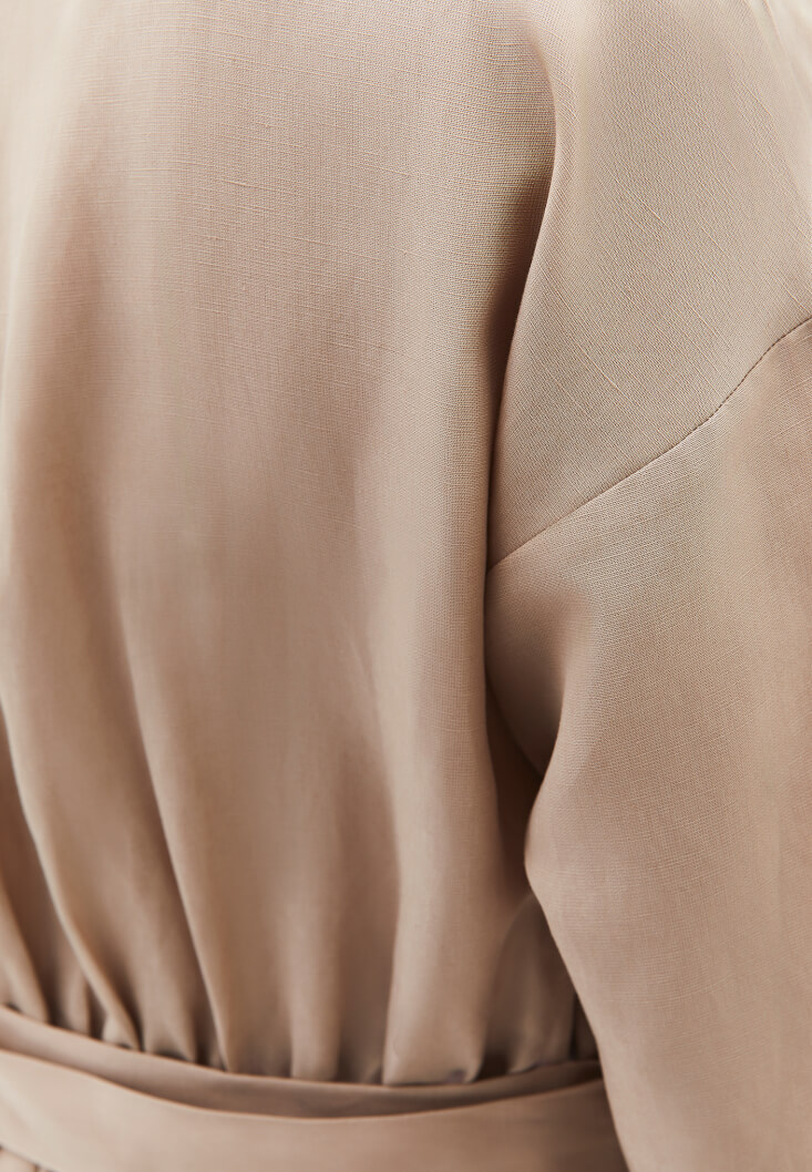• Bayan Bej Keten Karışımlı Kemerli Elbise (TENCEL™ )