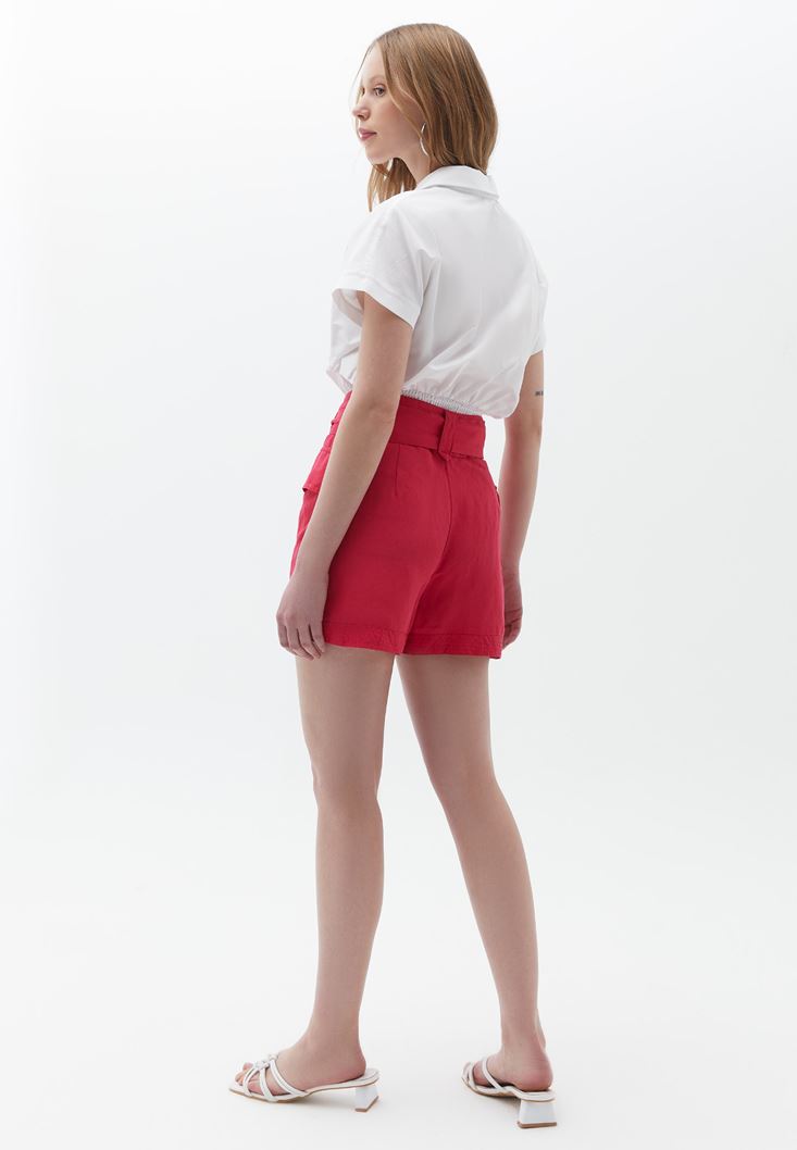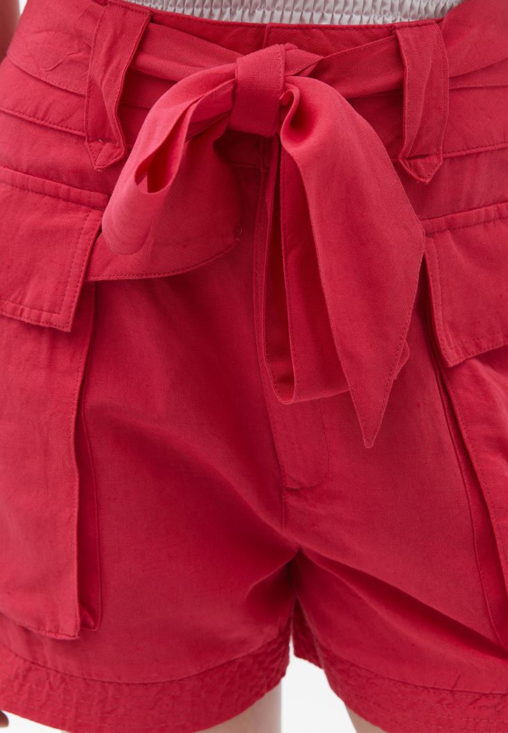 • Bayan Pembe Keten Karışımlı Kemerli Şort