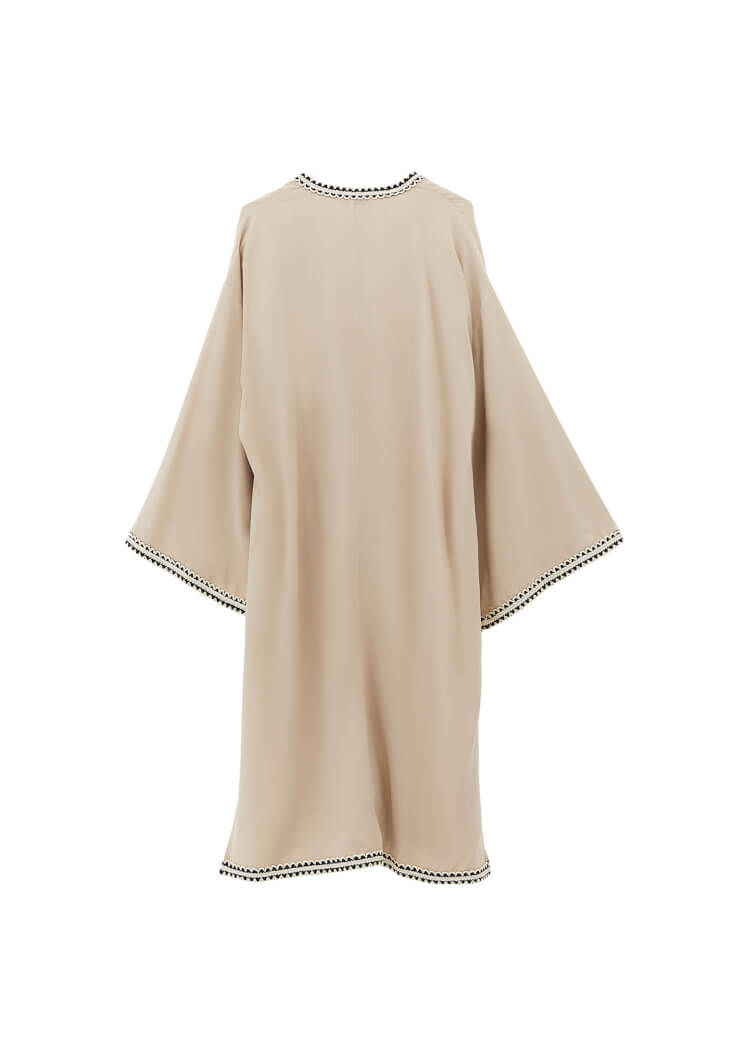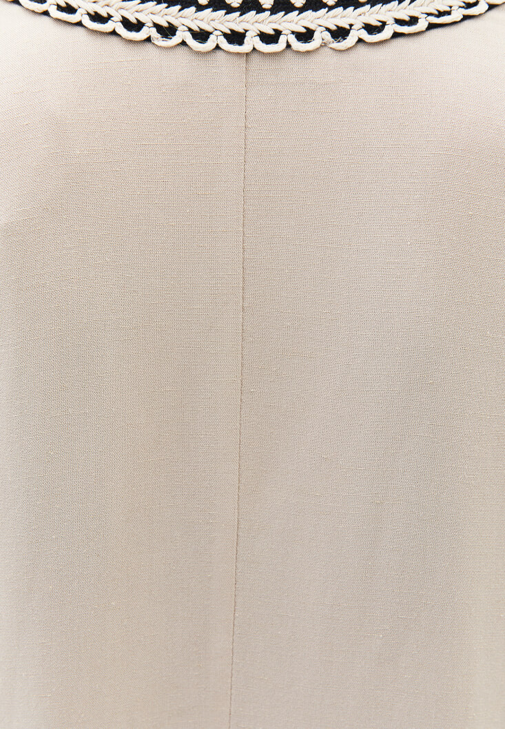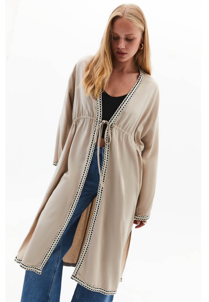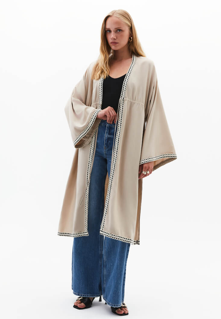 Bej Keten Karışımlı Kimono