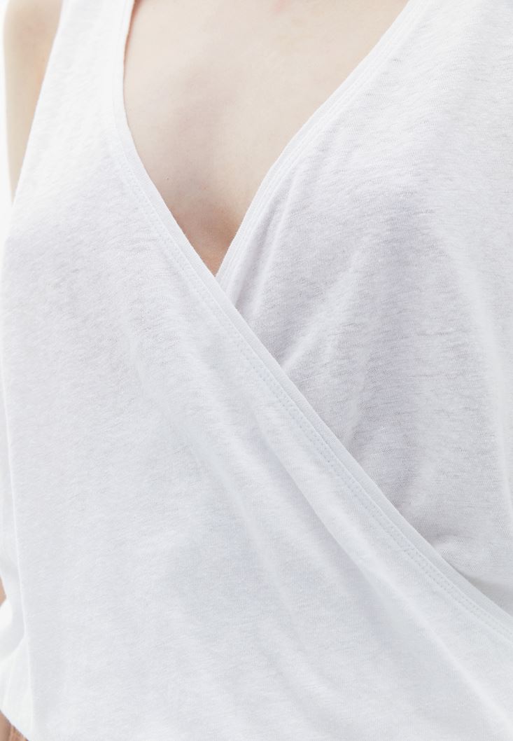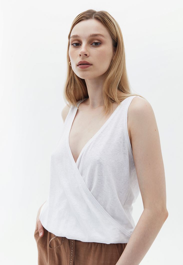 • Bayan Beyaz Keten Karışımlı Kruvaze Yaka Atlet