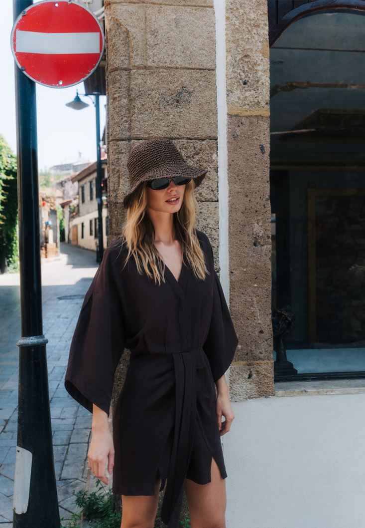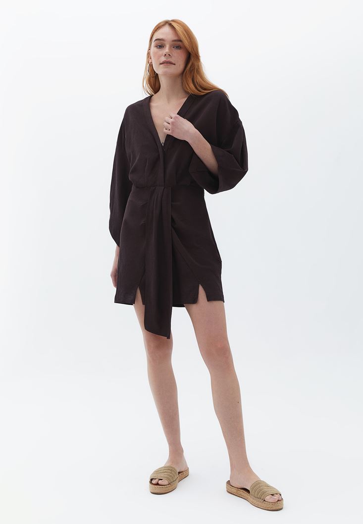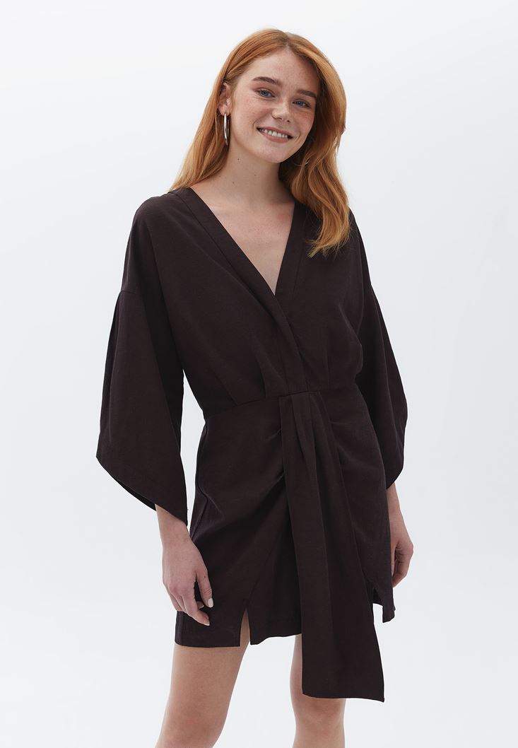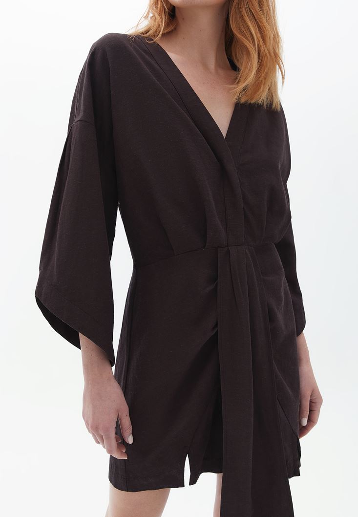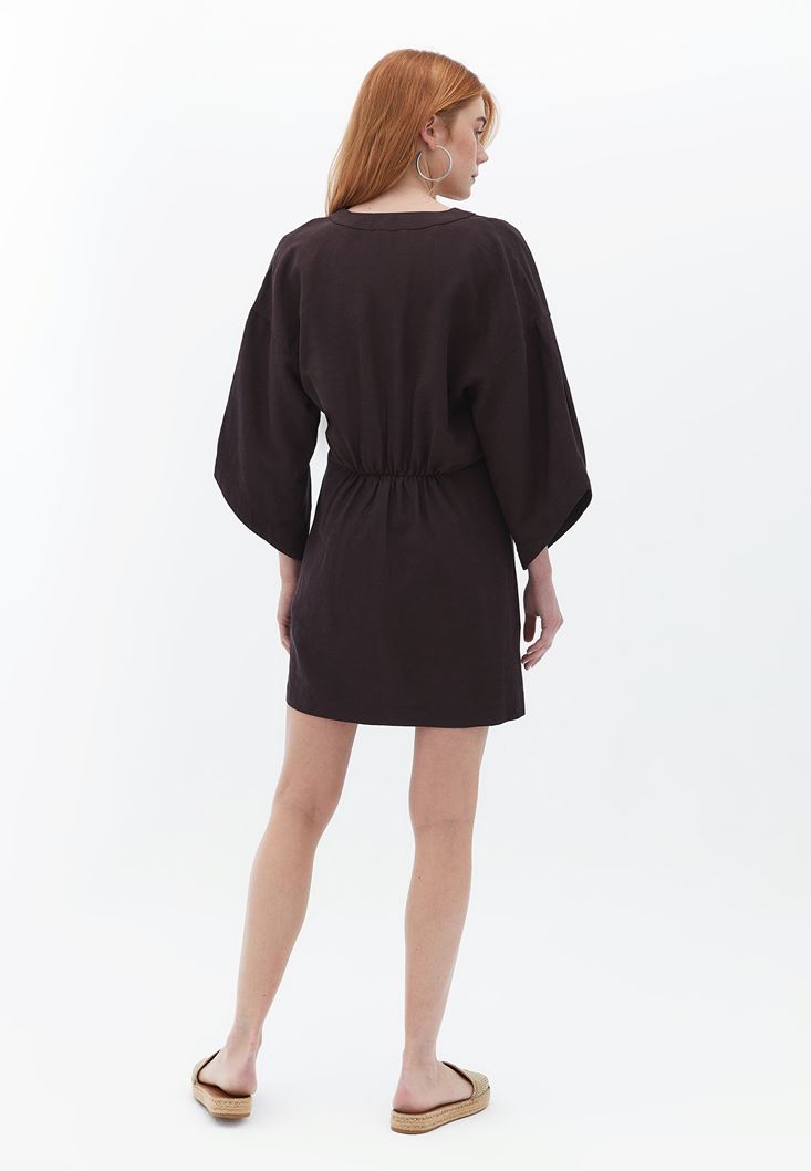 • Bayan Kahverengi Keten Karışımlı Mini Elbise