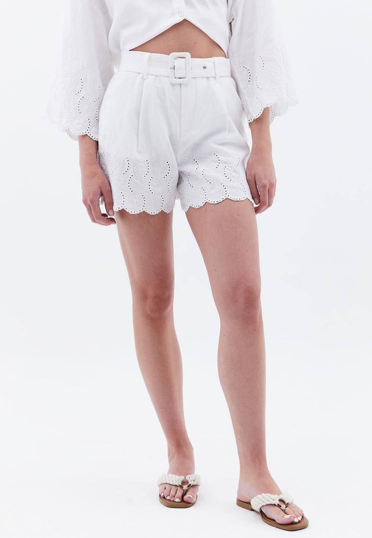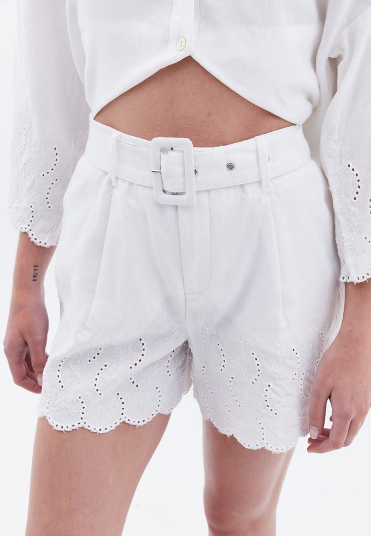 Beyaz Keten Karışımlı Mini Şort ( TENCEL™ )