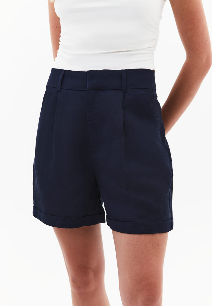 Lacivert Keten Karışımlı Mini Şort ( TENCEL™ )