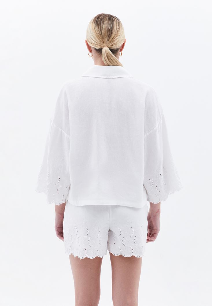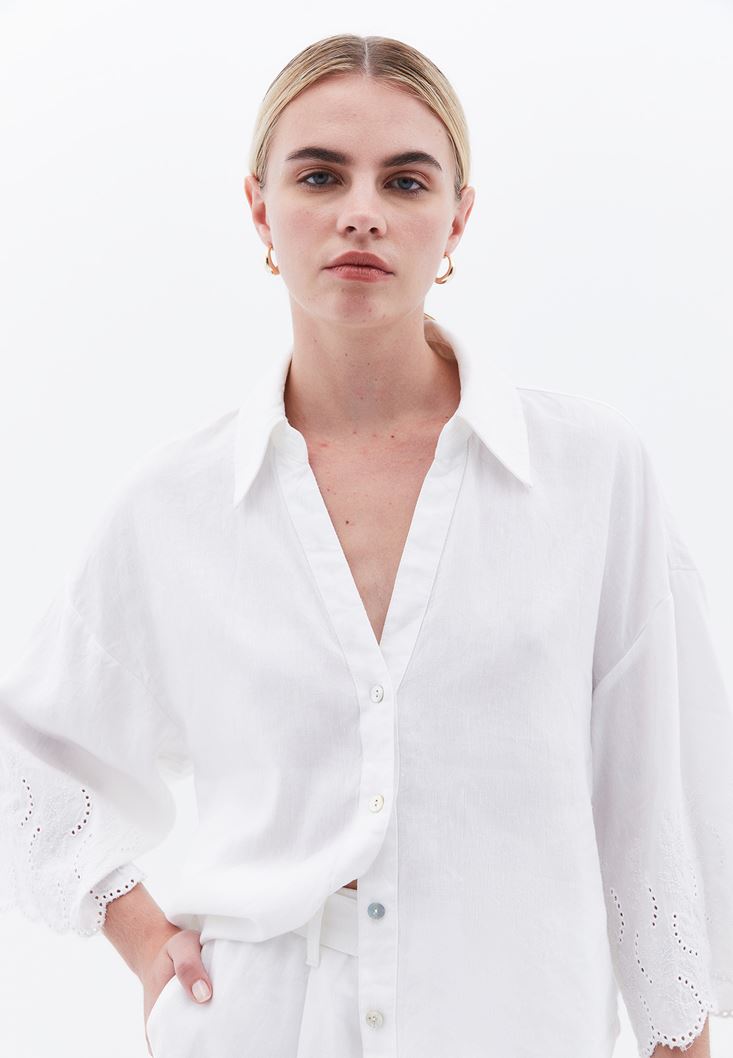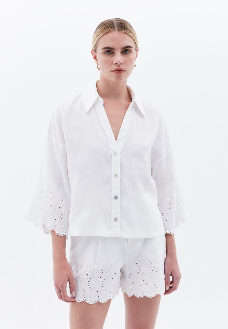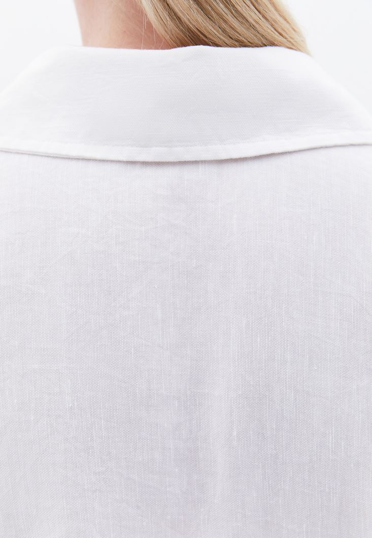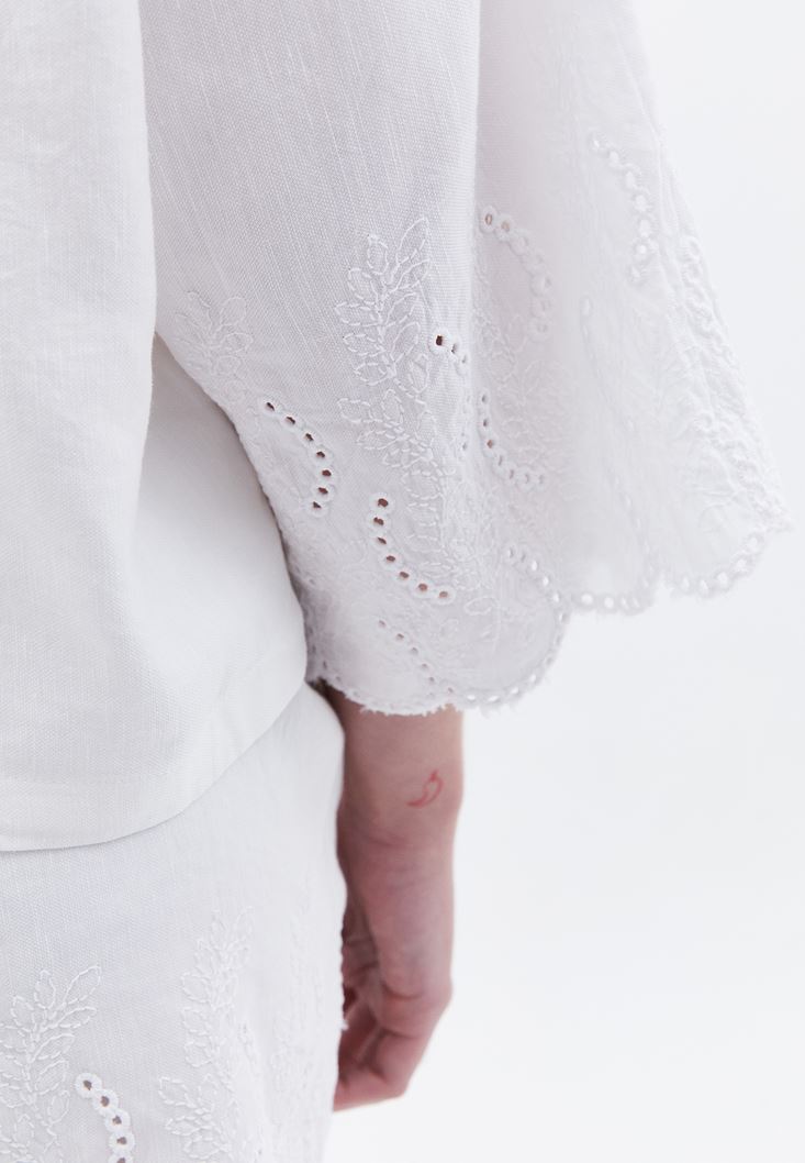 Beyaz Keten Karışımlı Nakışlı Gömlek ( TENCEL™ )