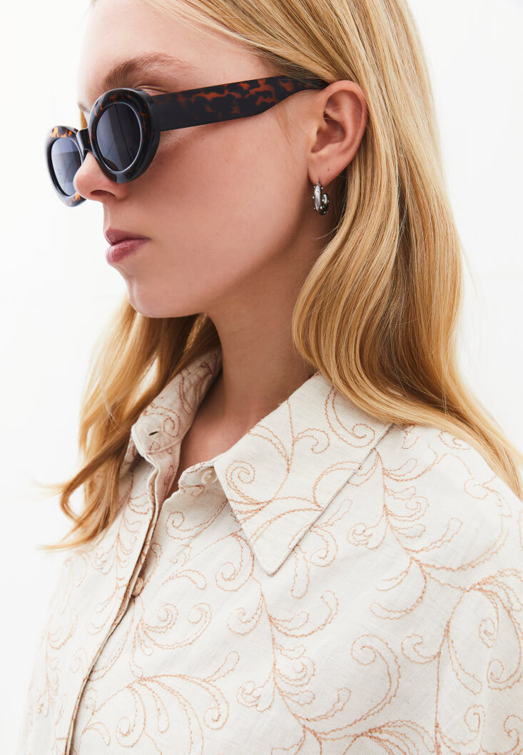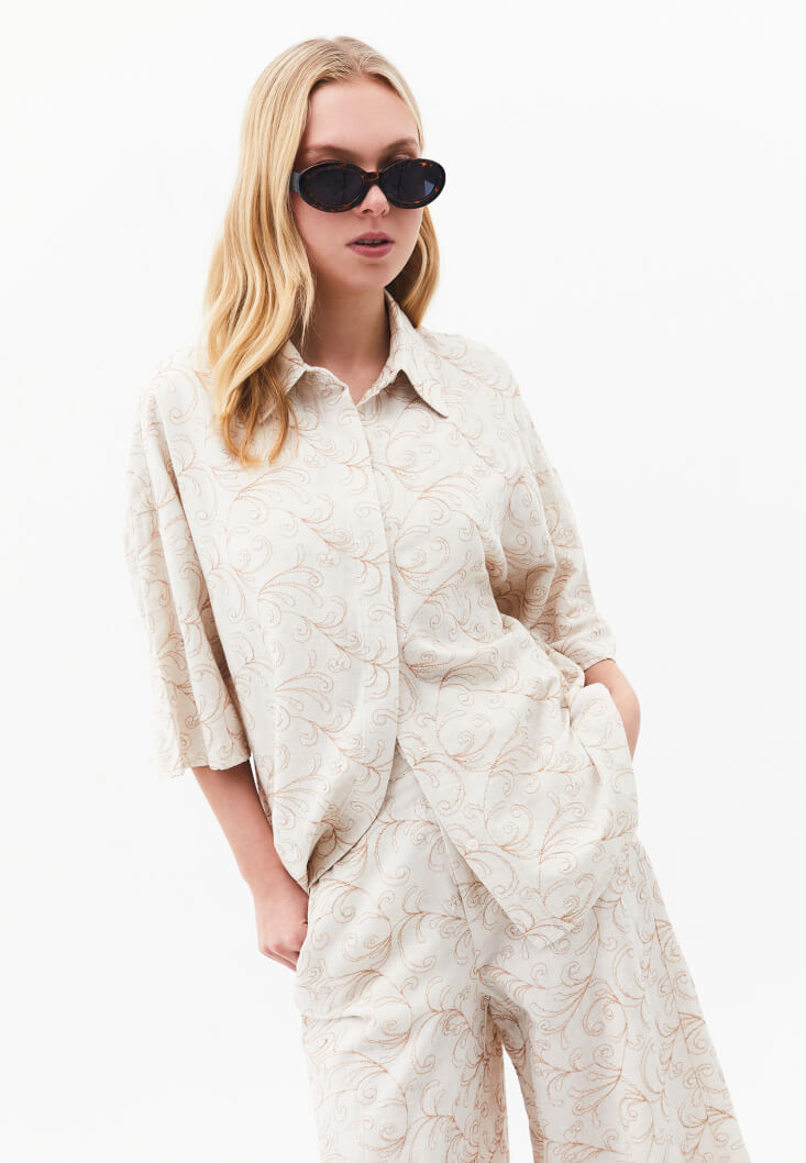 Oxxo Keten Karışımlı Nakışlı Gömlek 220607615