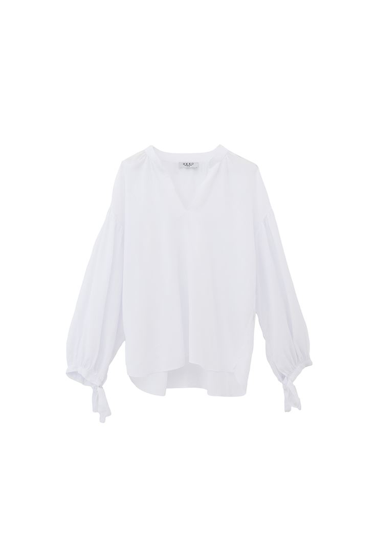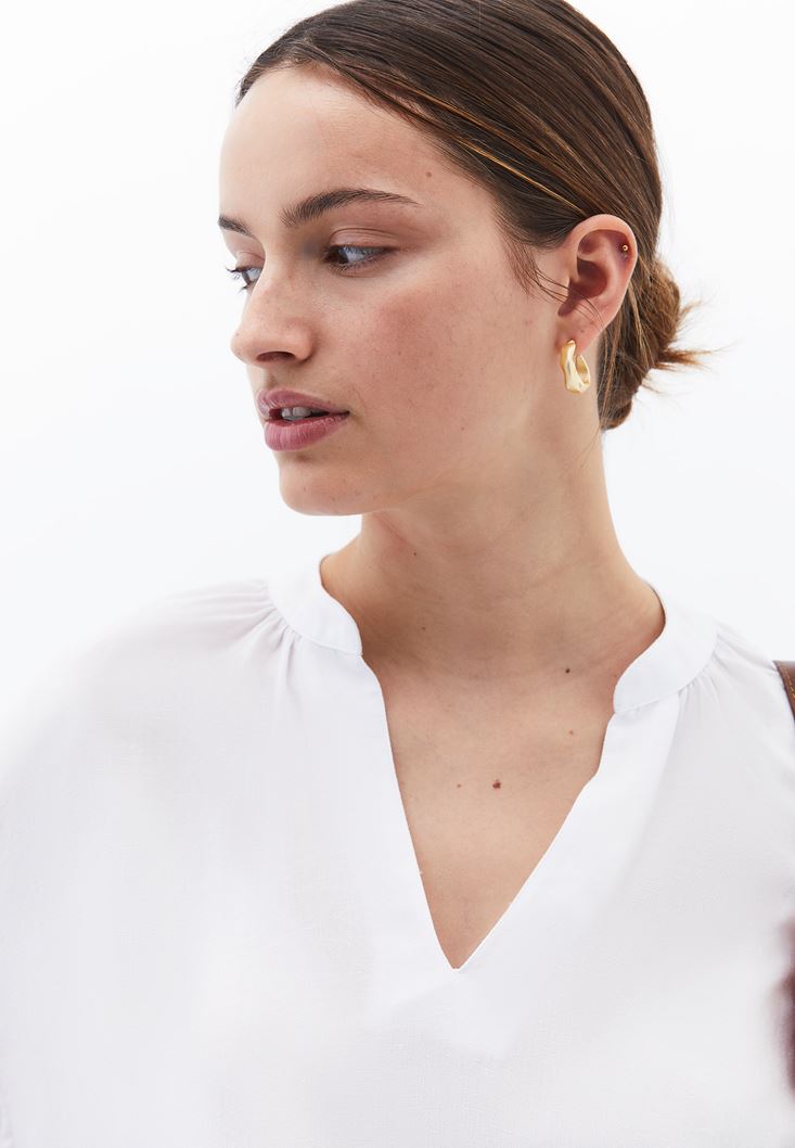 Beyaz Keten Karışımlı Oversize Bluz ( TENCEL™ )