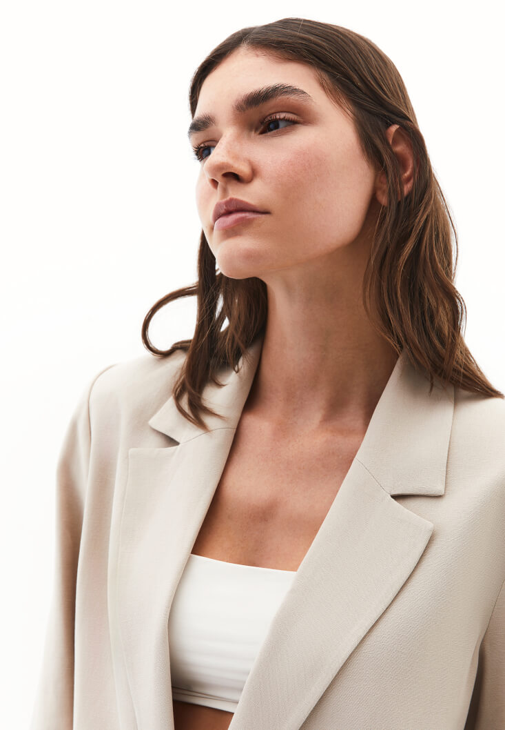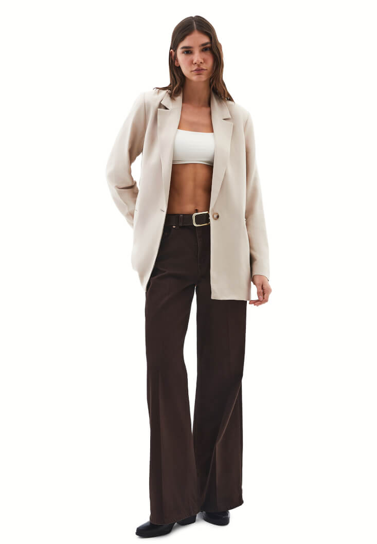 • Bayan Bej Keten Karışımlı Oversize Ceket