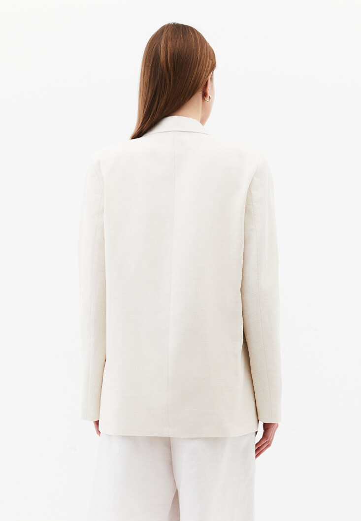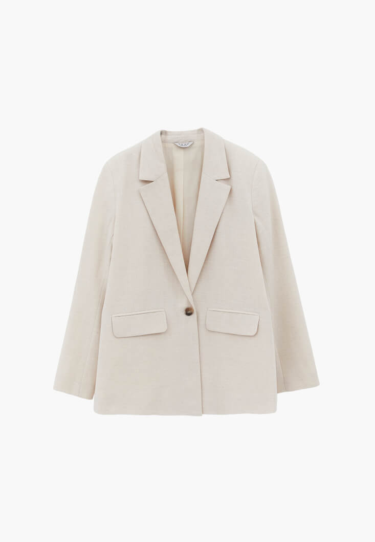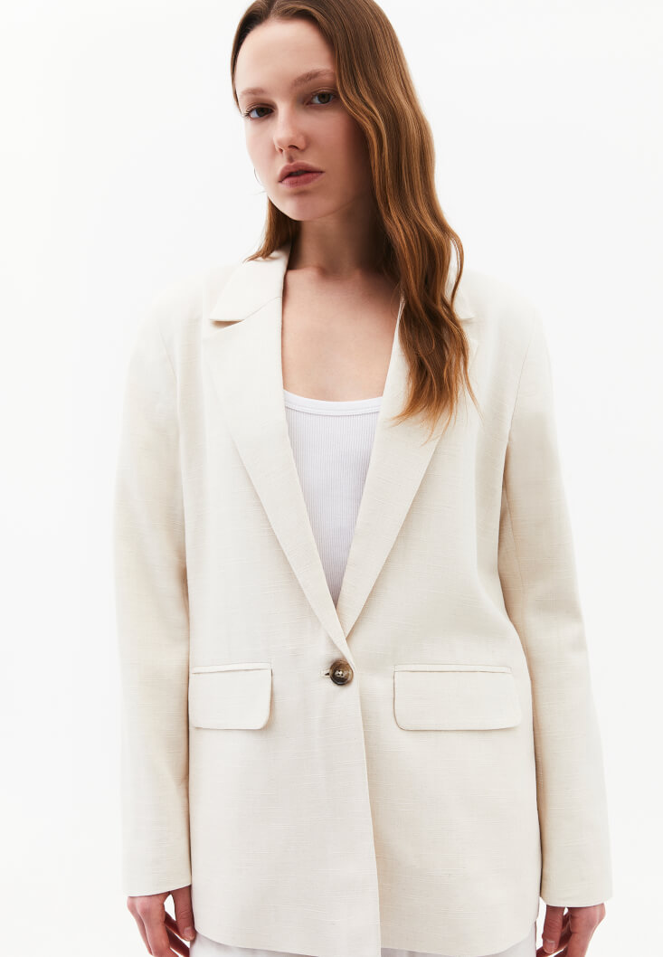 Bej Keten Karışımlı Oversize Ceket